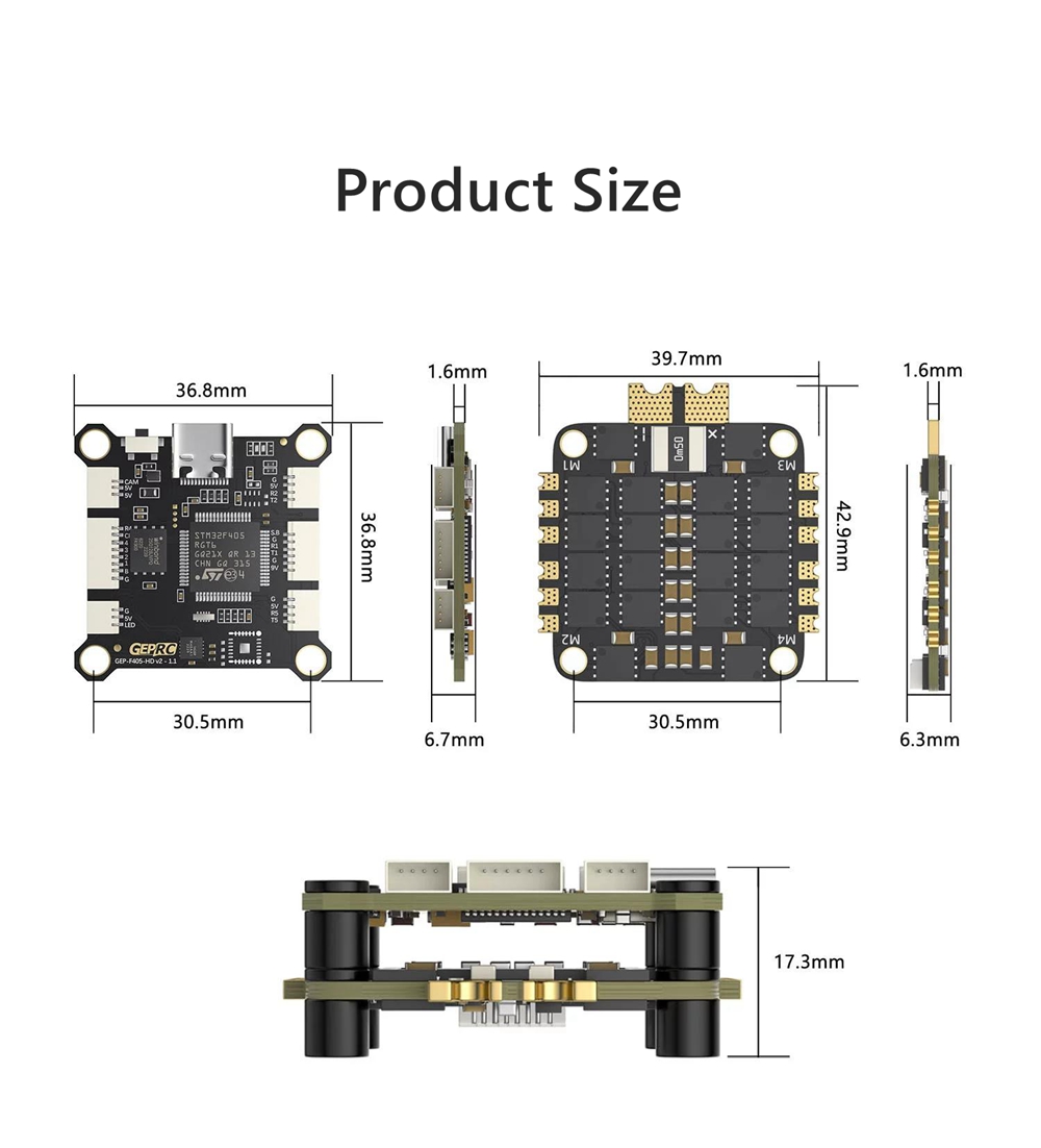 - Size: 42.9 x 39.7mm, hole space 30.5 x 30.5mm,φ4mm hole becomes φ3mm after using the silicone shock-absorbing circle.