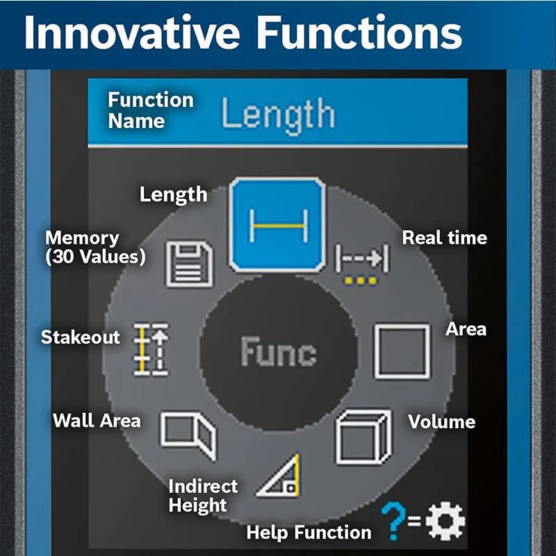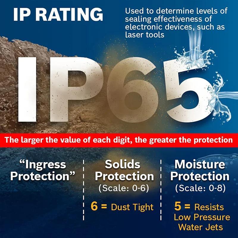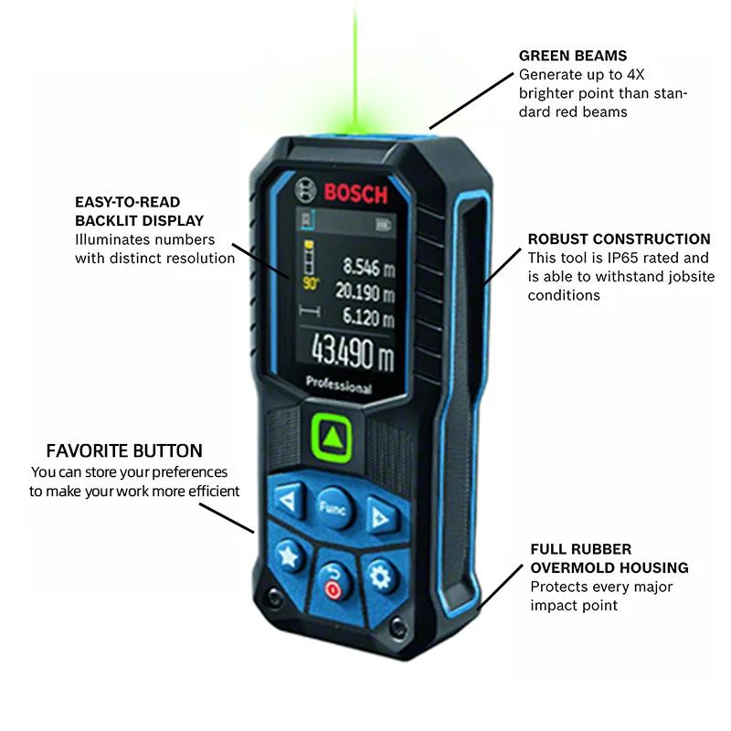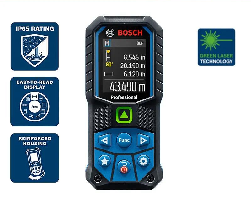 - It offers a highly durable design and green laser spot with integrated inclinometer. Thanks to the IP65 protection-certified design and a shock-absorbing rubber casing, the tool is protected against jet water and ingress of dust. Intuitive handling is ensured by its smart user interface with many helpful features such as a high-end colour display, a handy help function and a dedicated favourite shortcut button.