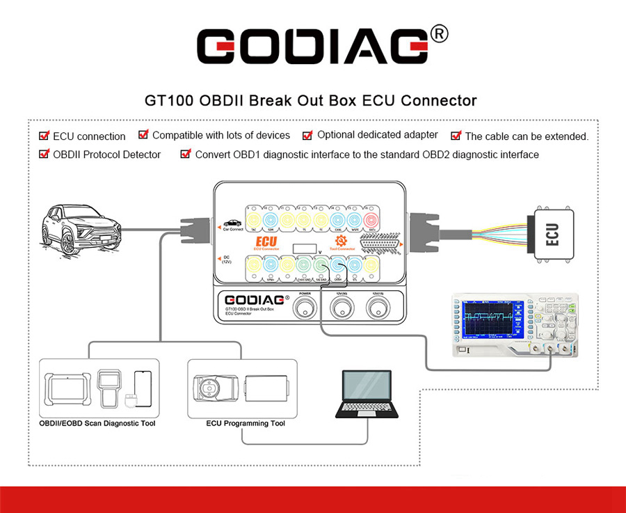 GODIAG GT100 OBDII Breakout Box ECU Connector Automotive Tools Test Platform For OBDII Protocols