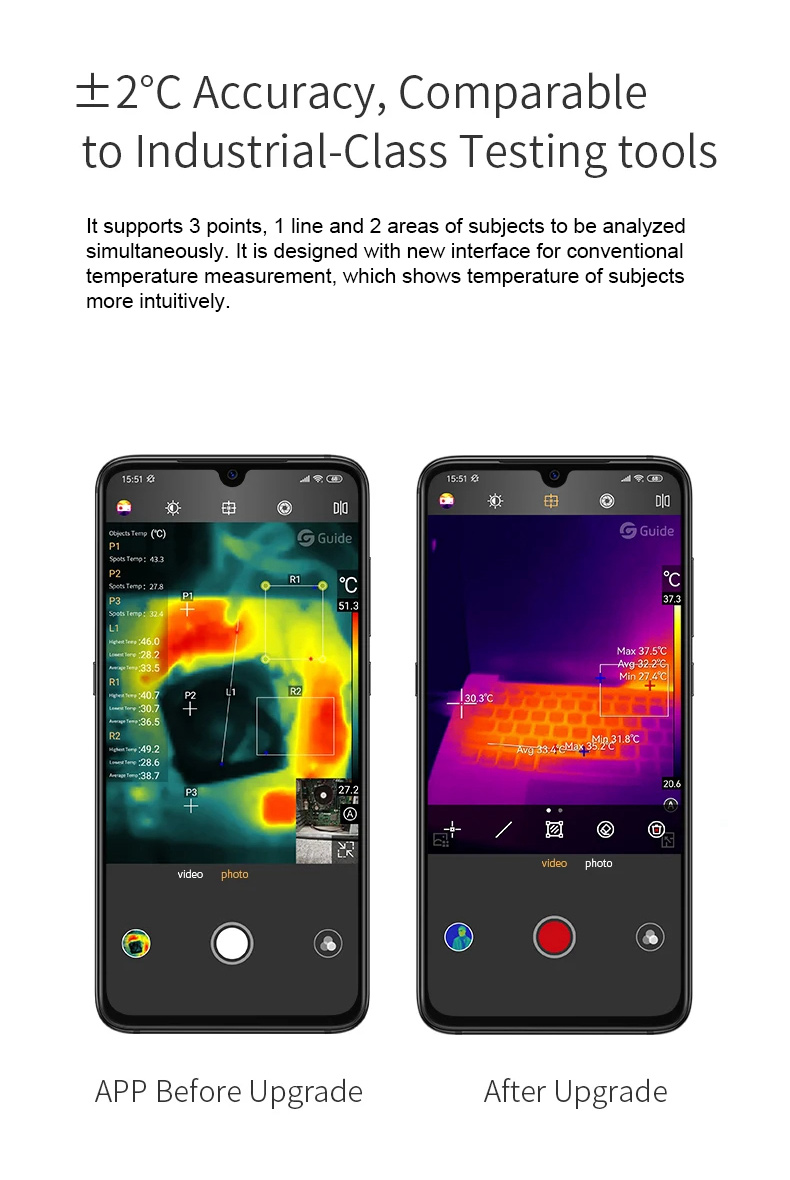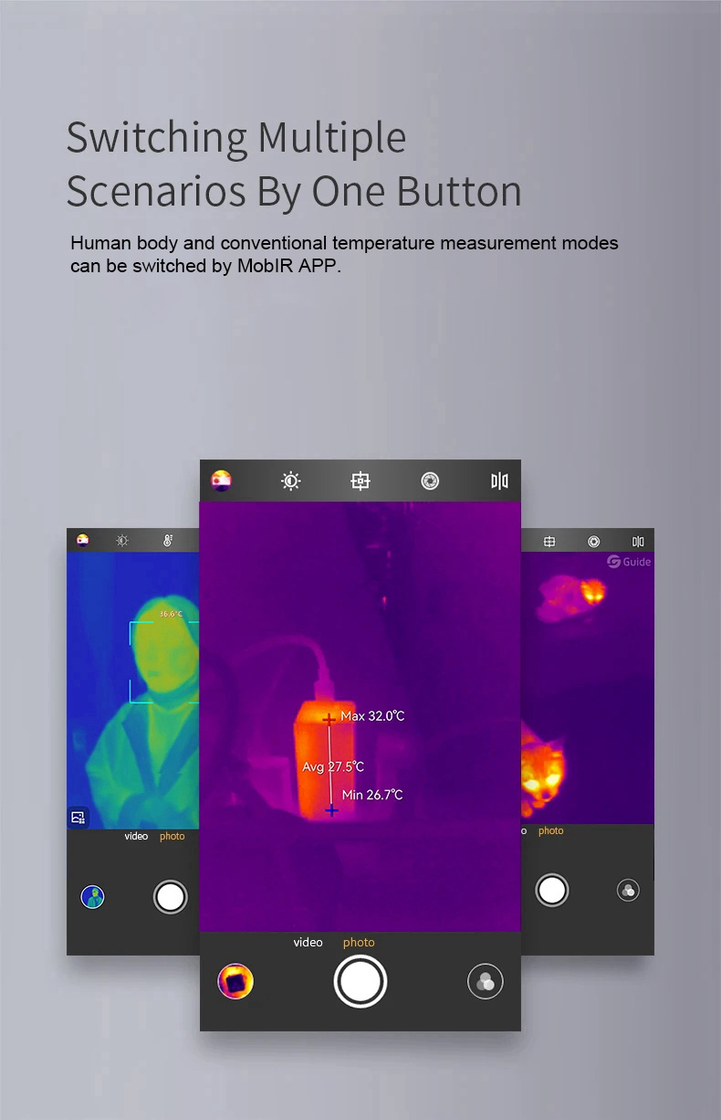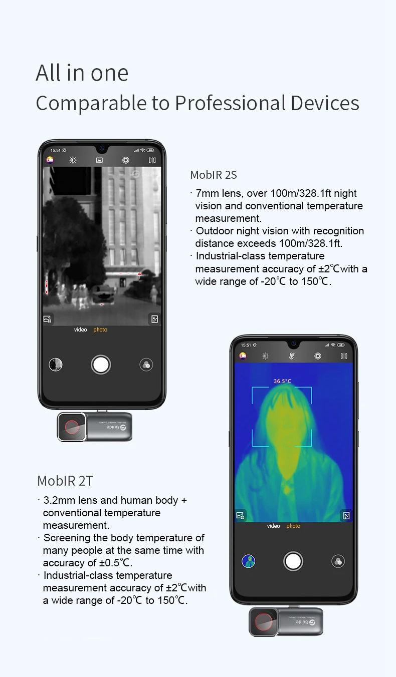 Guide MobIR 2T 256x192 Mobile Phone Thermal Imaging Camera for Android Tests Human Body Temperature