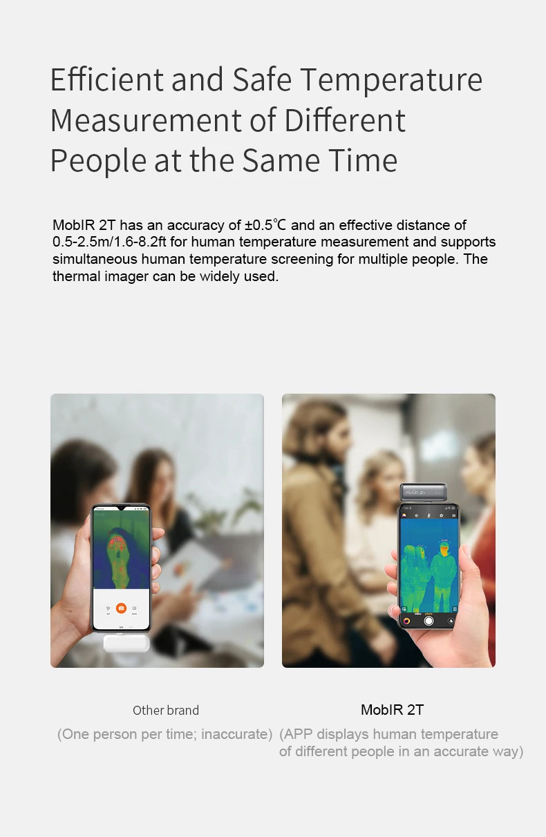 * Human body and conventional temperature measurement modes can be switched by MobIR APP