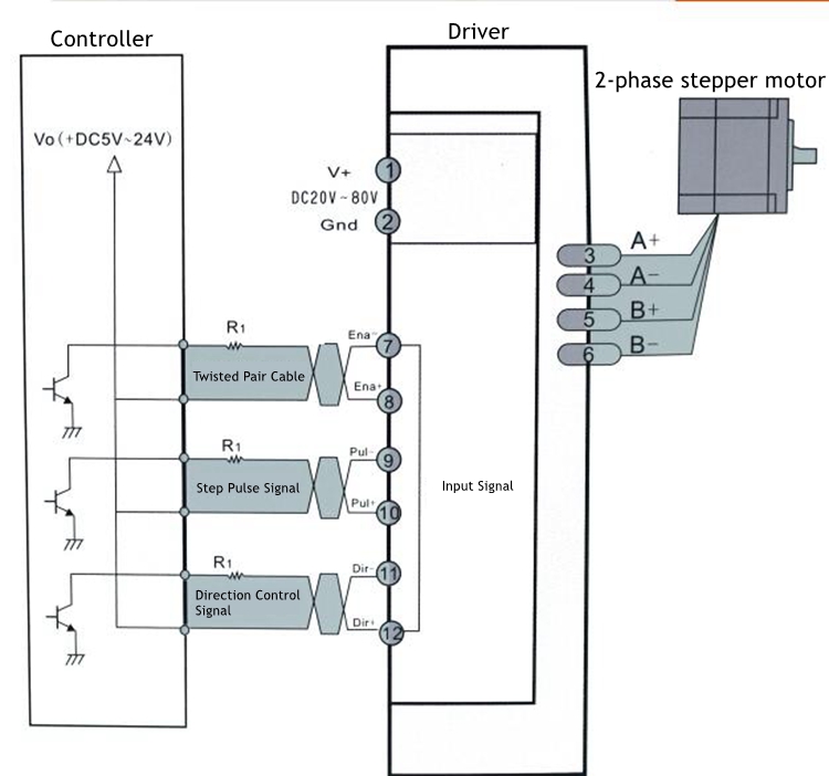 - Please use an input signal voltage of DC5V ~ DC24V. No additional resistors need to be connected along the way. Please use twisted pair wire (AWG22 ~ 20) for the signal line, with a length controlled within 2M. The longer the pulse line, the lower the frequency that can be transmitted. Please use wire with AWG20~18 or higher for power cables, and do not use the same conduit or tie signal cables together with power cables.