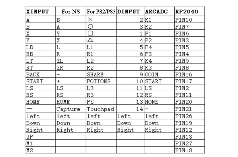 The HAMGEEK A16 Pro Hitbox leverages a standardized button mapping system, converting generic gamepad inputs to specific input types as needed. Below is a mapping of its buttons to their corresponding input types and layouts: