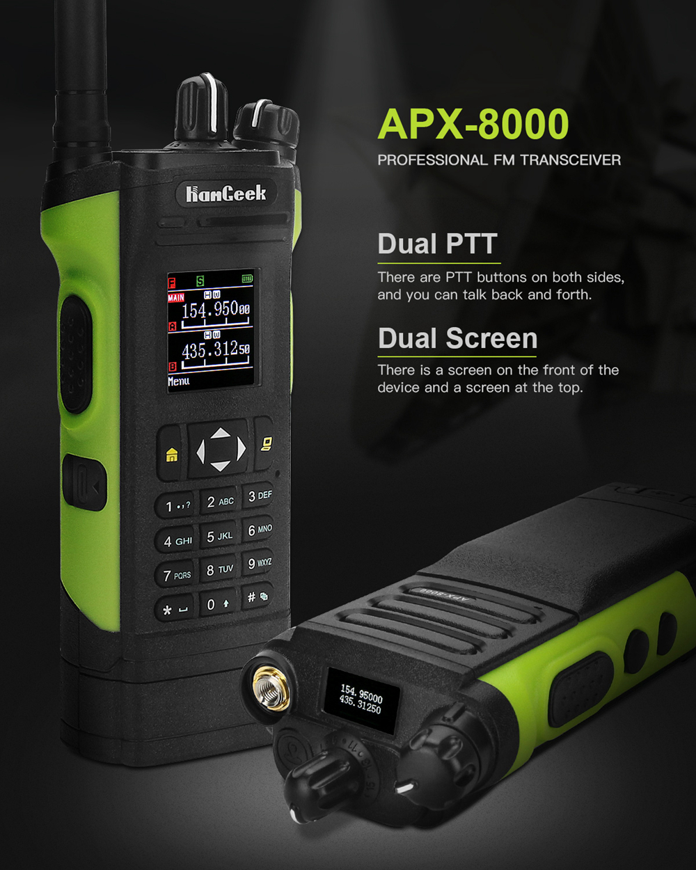 - HAMGEEK APX-8000 walkie talkie with an extra large color screen