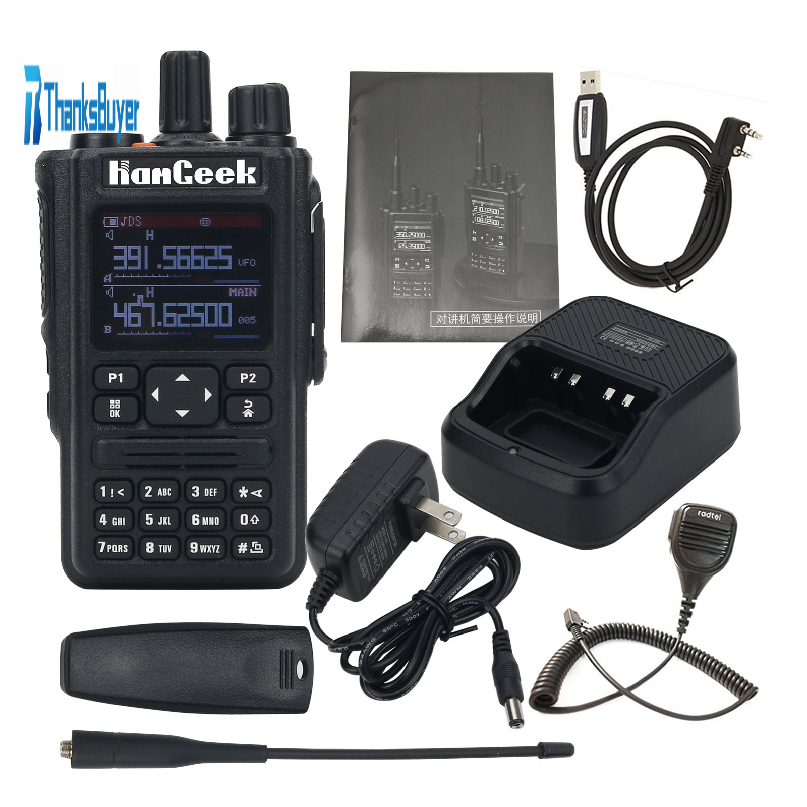 HamGeek HG-590 Amateur GPS Walkie Talkie 256CH Handheld Transceiver w/ Programming Cable Handheld Mic