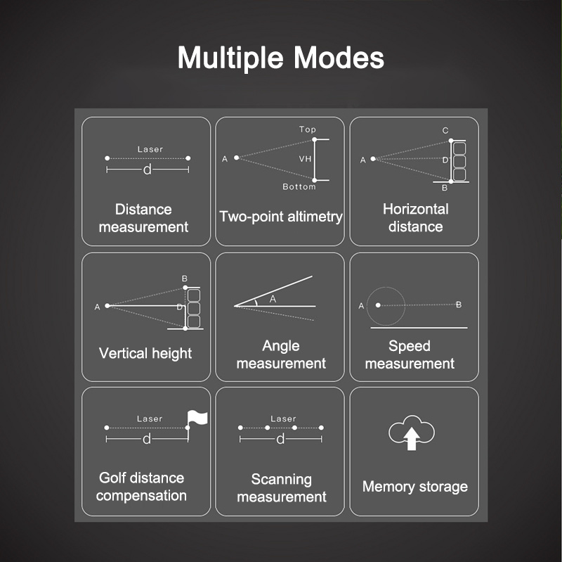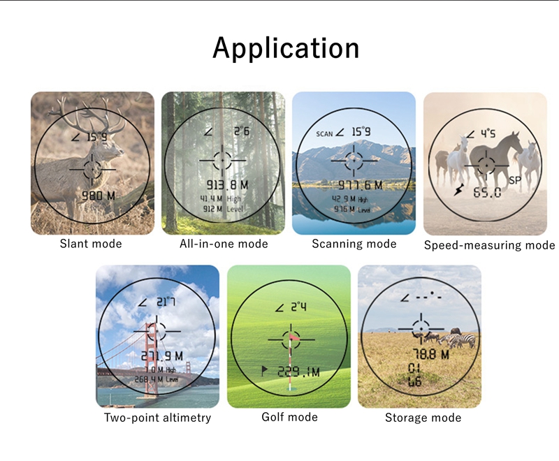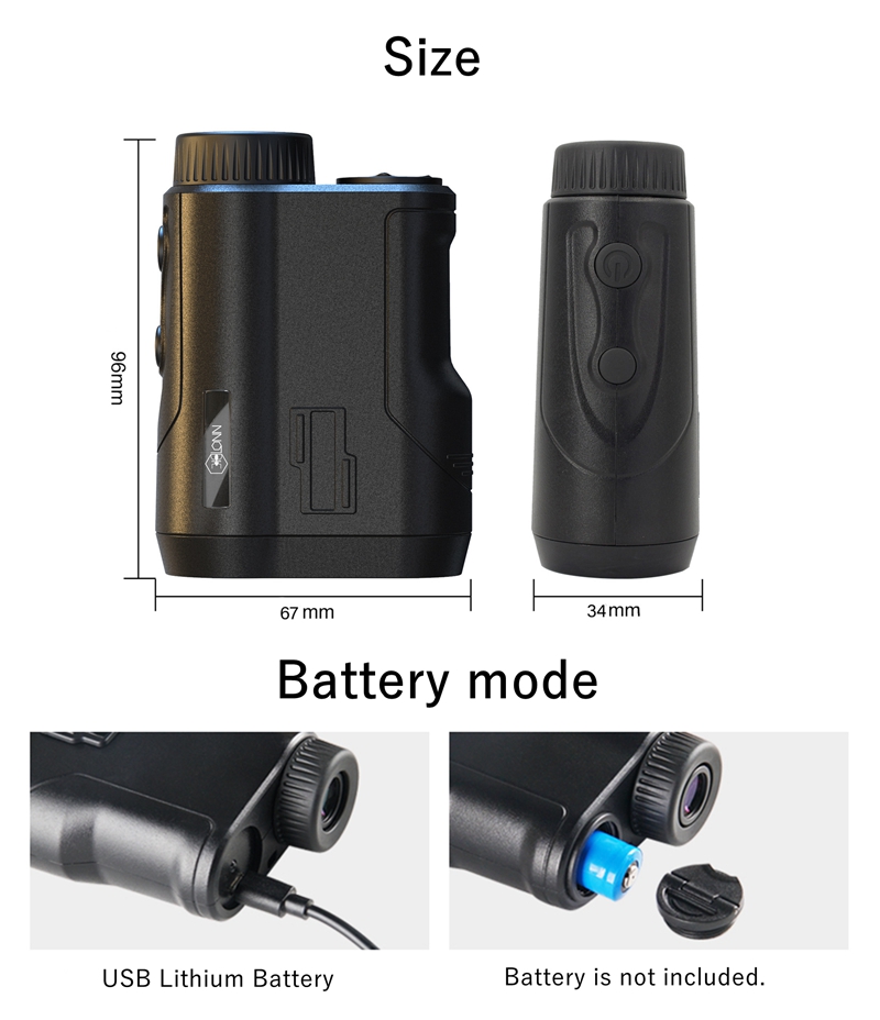 - Ranging mode: Manual mode; altitude and angle measurement mode; automatic scanning mode; golf mode