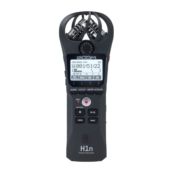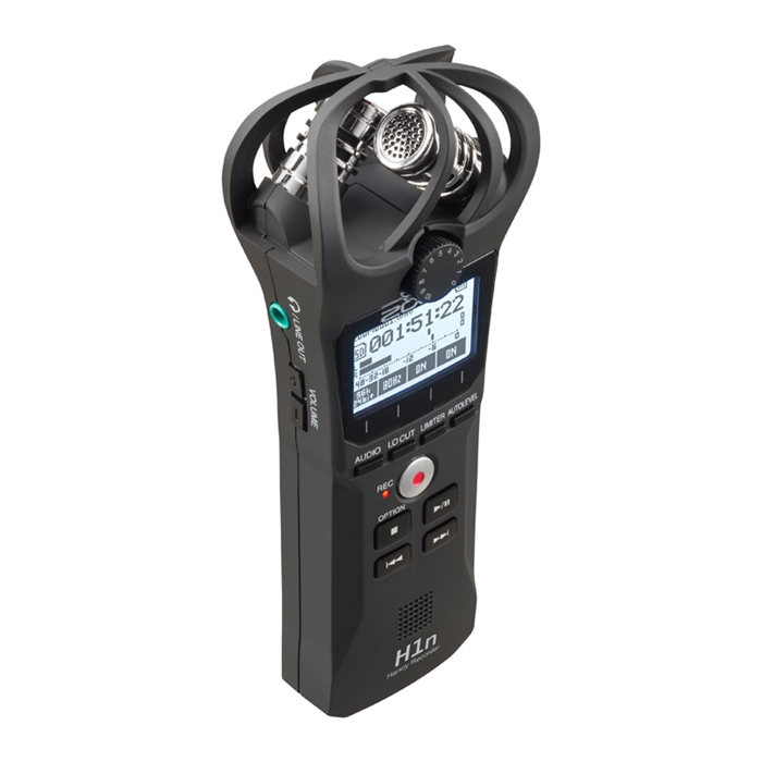 H1n's dead-simple stereo pickup with unlimited overdubs makes archiving music performances, dialogue, and sound for film easier than ever. The H1n is the successor to the acclaimed H1. Upgraded features include dedicated one-touch buttons for recording, playback, and audio settings; a new 1.25" backlit LCD that reads easily in any lighting condition; slate and test tone generators for simpler A/V sync; auto-record and self-timer functions; a front-facing speaker; and adjustable playback speed for transcription and notation. Whether you use the phase-coherent onboard stereo XY mics or plug in your own sound source via the 1/8" stereo mic/line jack, the H1n memorizes your world in glorious 24/96 hi-fi.