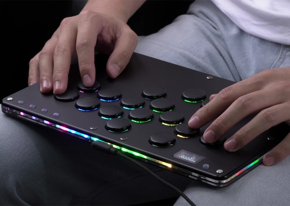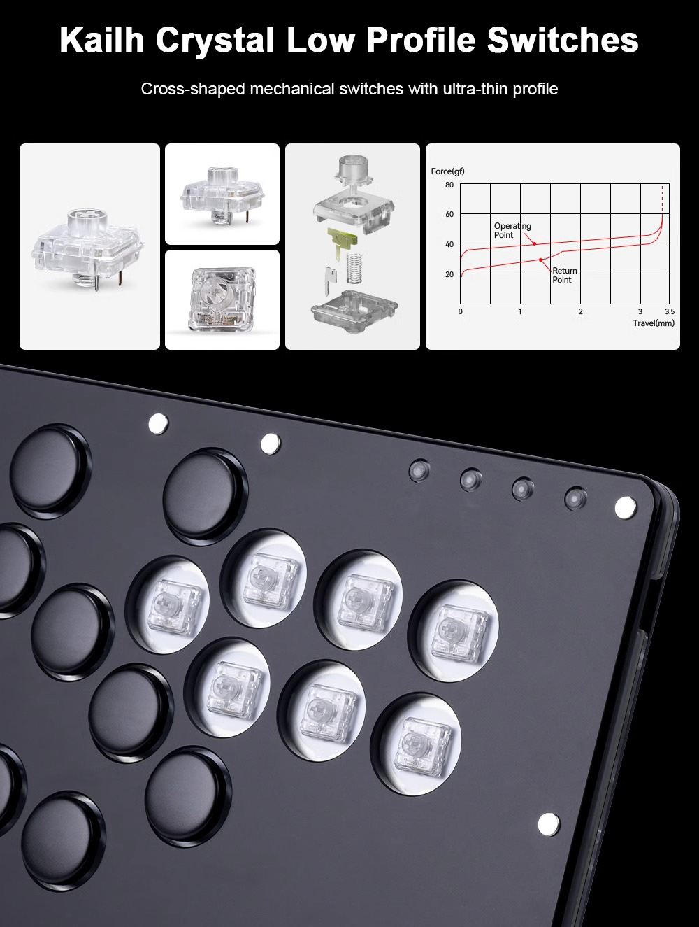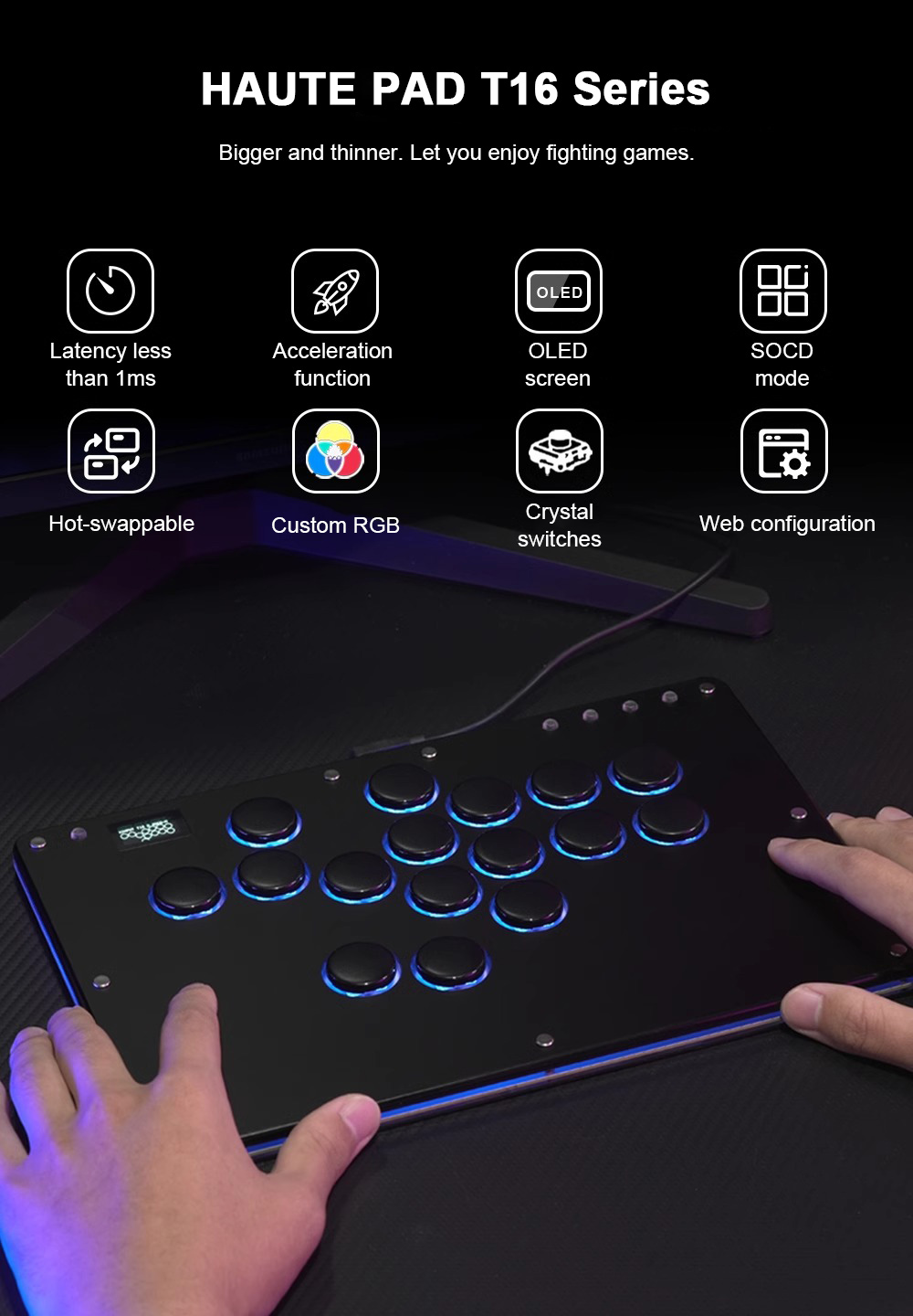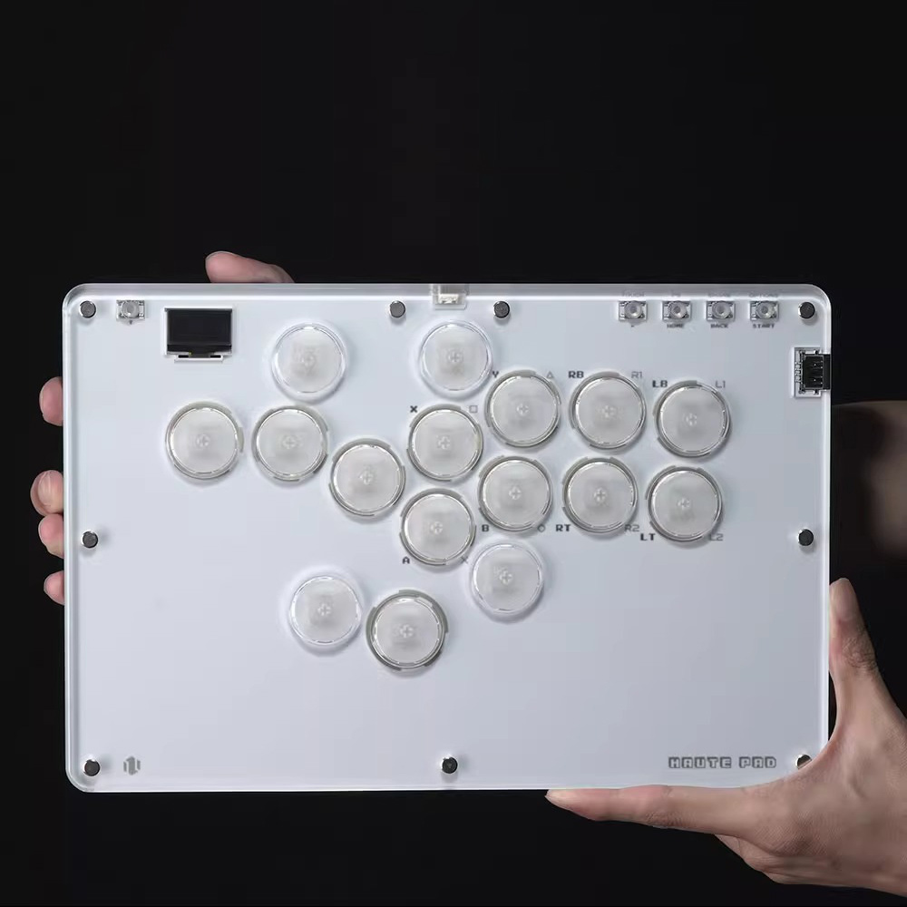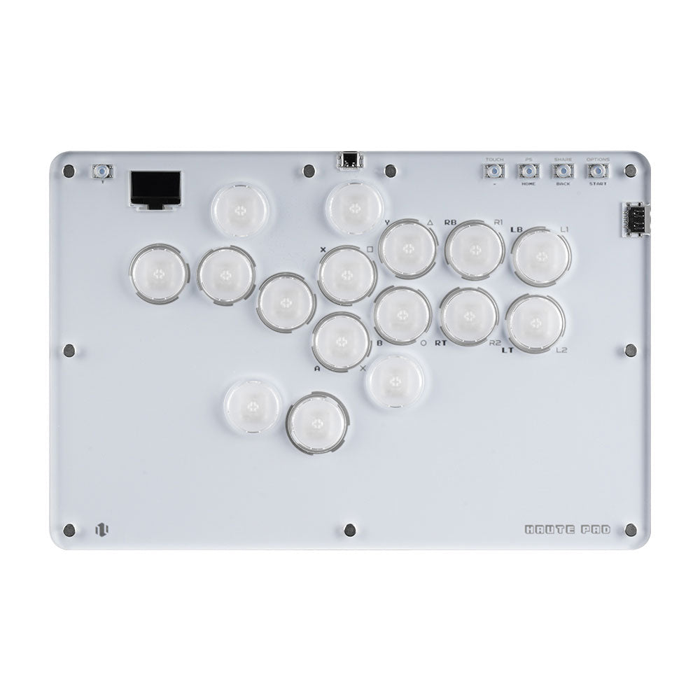 HAUTE PAD T16 Pro V2 White 16-Button Arcade Stick w/ Crystal Low Profile Switches & Chamfered Edges
