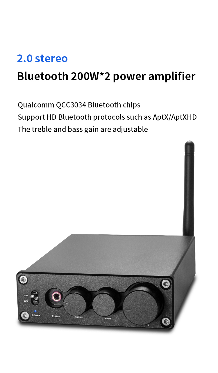 Heareal Black G2 Bluetooth5.0 Power Amplifier Stereo2.0 2x200W High Power HiFi TPA3116 Digital Amplifier