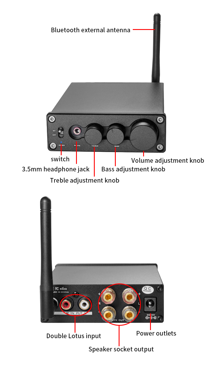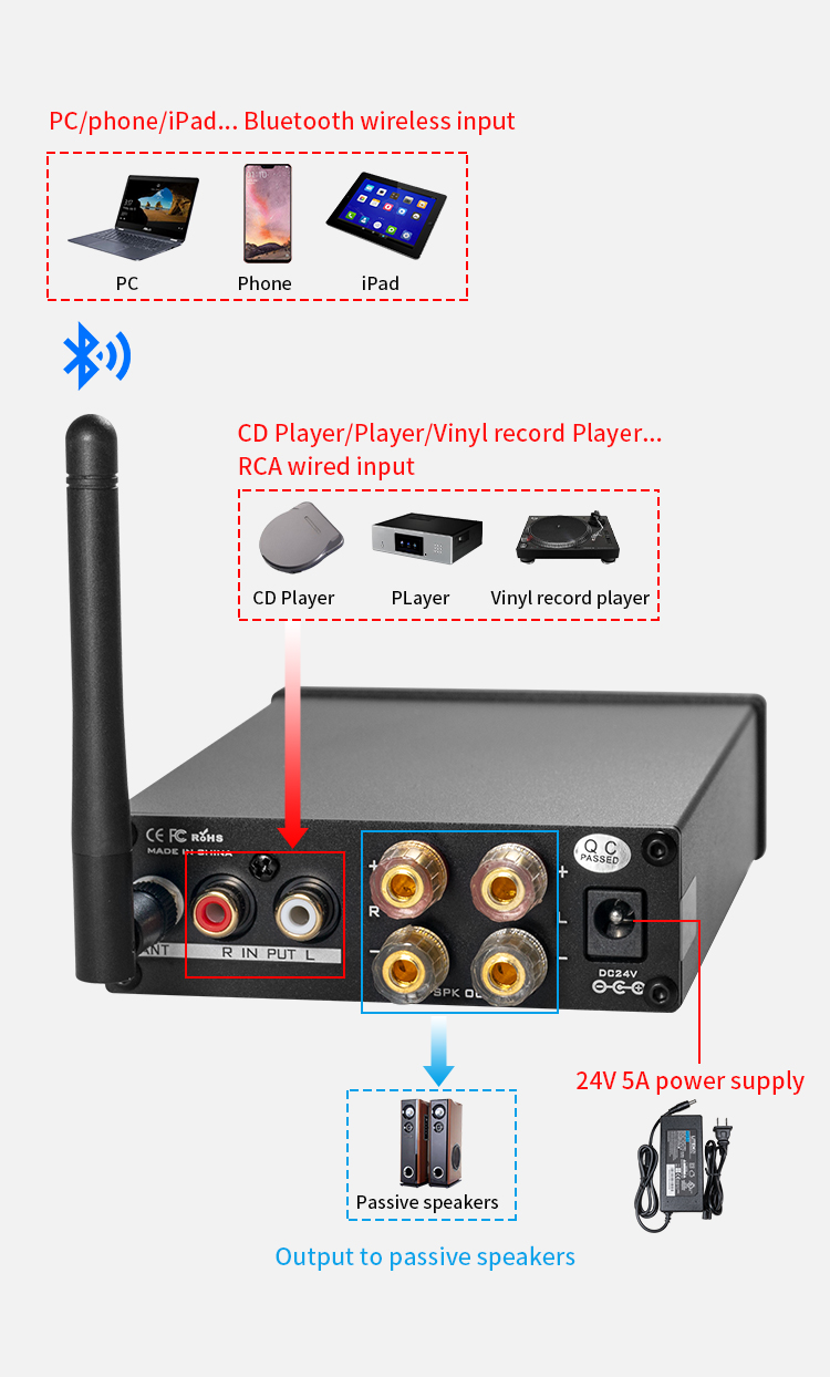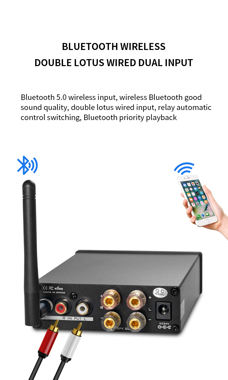 - Audio input: Bluetooth5.0/RCA
