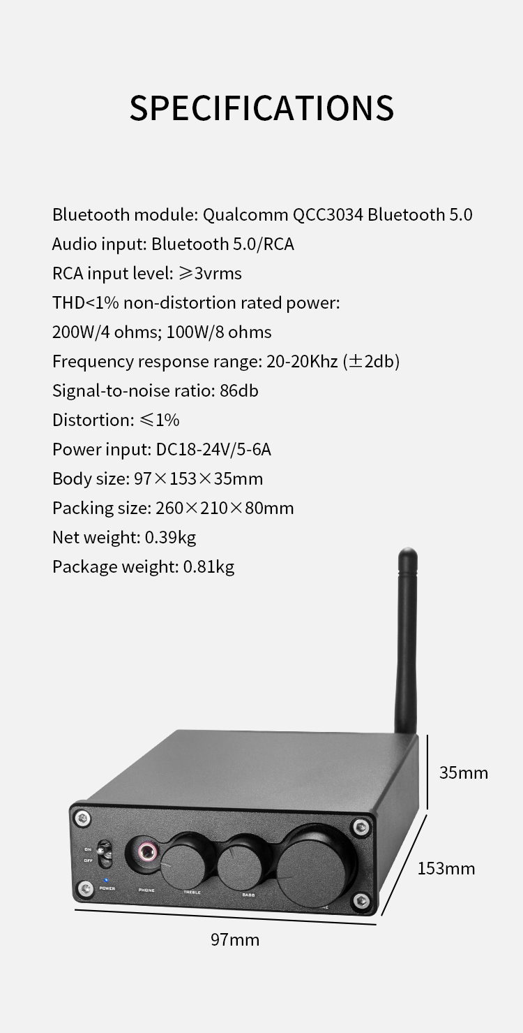 - Bluetooth module: QCC3034 Bluetooth5.0