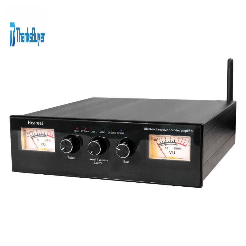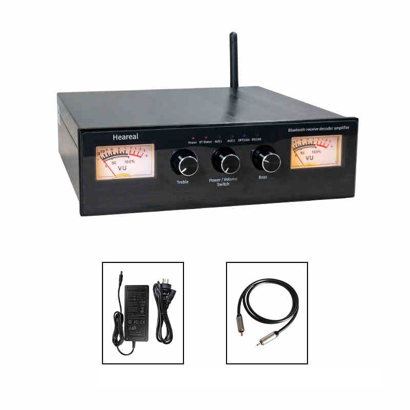 Heareal G4 Bluetooth Power Amplifier HiFi Stereo Double VU Meter Amplifier with Power Adapter and Coaxial Cable