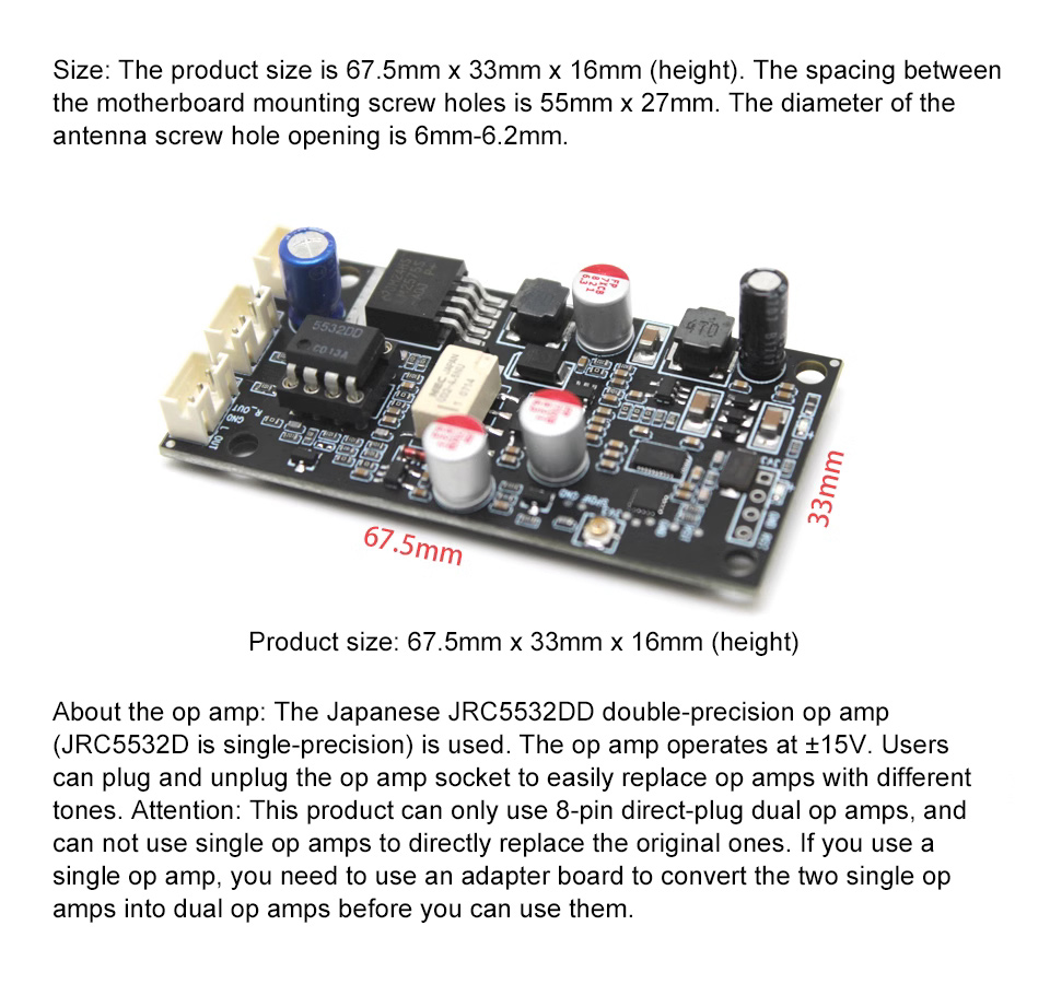 - The Bluetooth board needs to be powered by an independent power supply. It can not share power with the amplifier, as this will cause common ground noise.