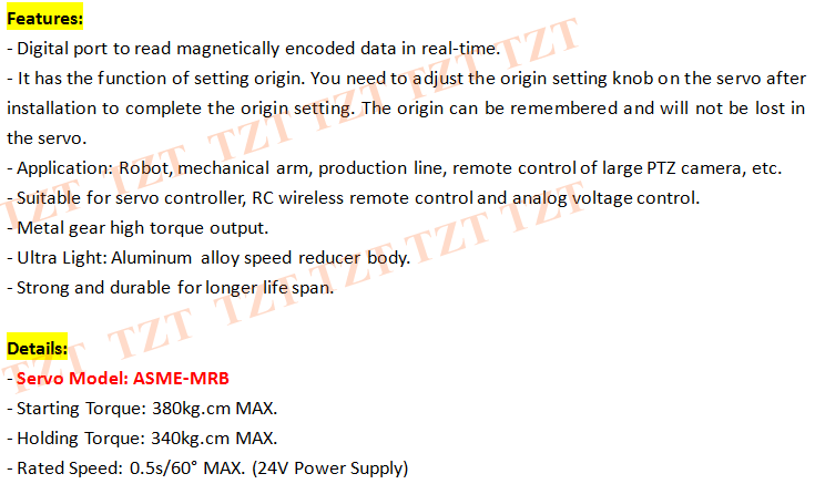 High Torque Servo DC12-24V 380kg.cm 360 Degree Non-Contact Magnetically Encoded Servo ASME-MRB