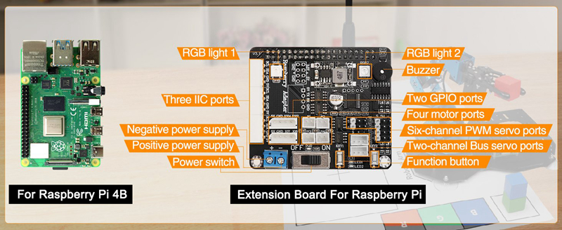 - Hardware: For Raspberry Pi 4B and Raspberry Pi extension board