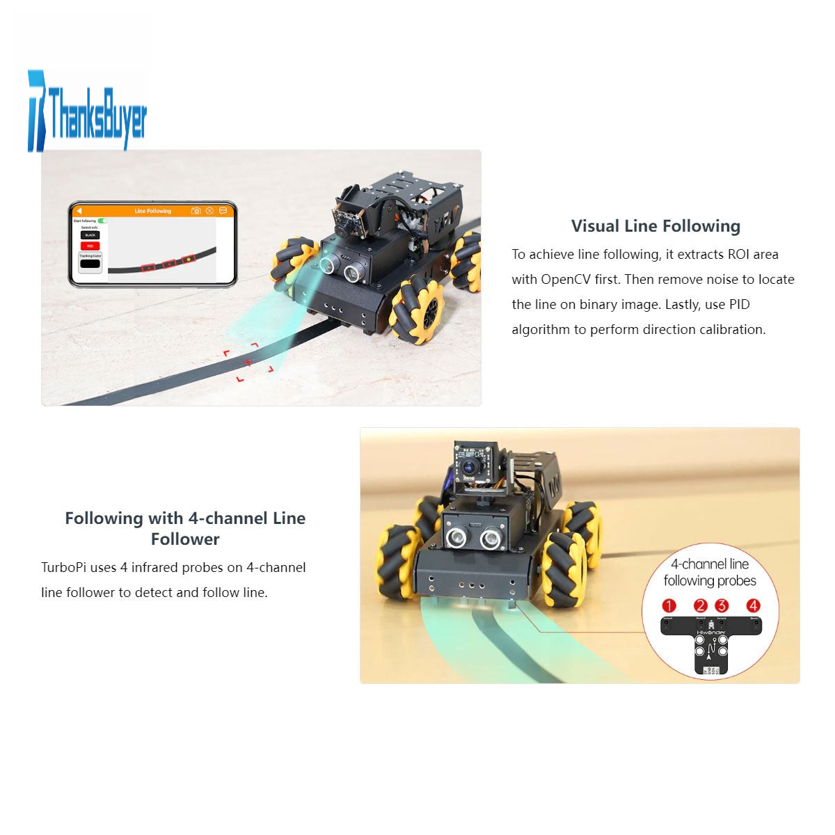 4-channel line follower with IIC interface enables TurboPi to detect black line without occupying CPU for Raspberry Pi.