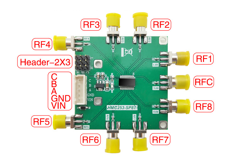 * SMA-RF1-RF2-RC3-RF4-RF5-RF6-RF7-RF8: switch selection terminal