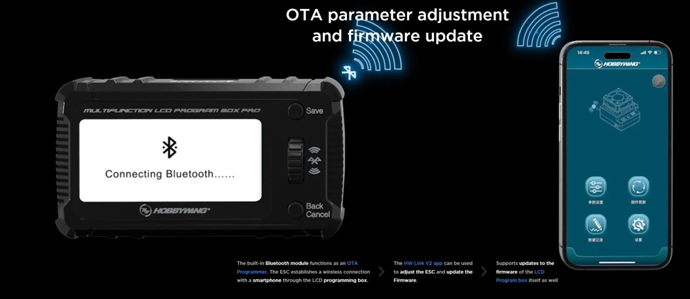 - Supported ESC: all ESC supported by the original LCD G2 and OTA Bluetooth modules