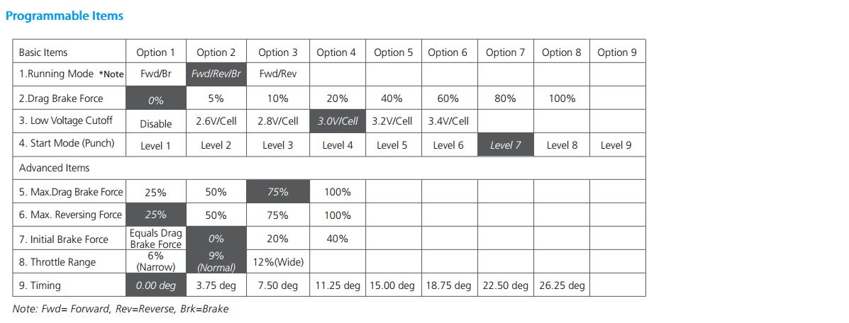 - Single-button Programming & Factory Reset: The SET button on the ESC allows the user to easily program or factory reset the ESC with ease.