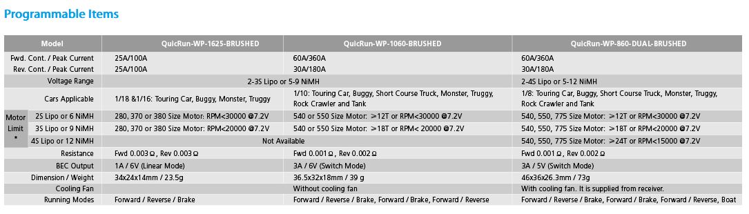 - 1 x Brushed ESC