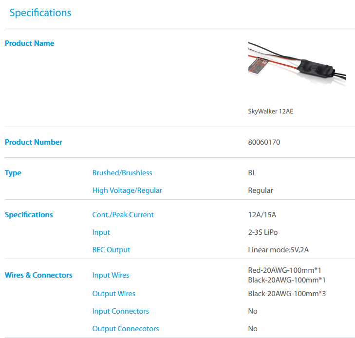 Hobbywing SkyWalker 12AE 2-3S Brushless ESC Drone ESC Electronic Speed Control (Without Plug)