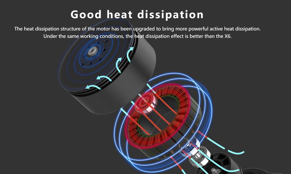 - The heat dissipation structure of the motor has been upgraded to more powerful active heat dissipation.
