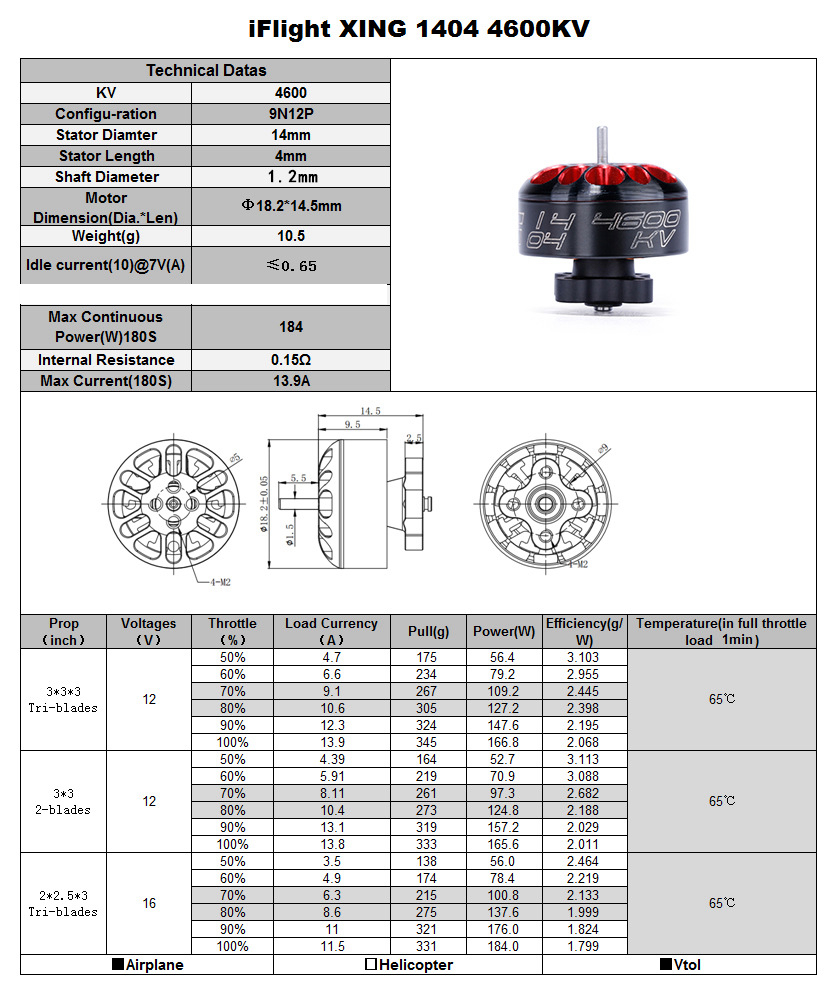 - 1 x iFlight XING 1404 4600KV Brushless Motor