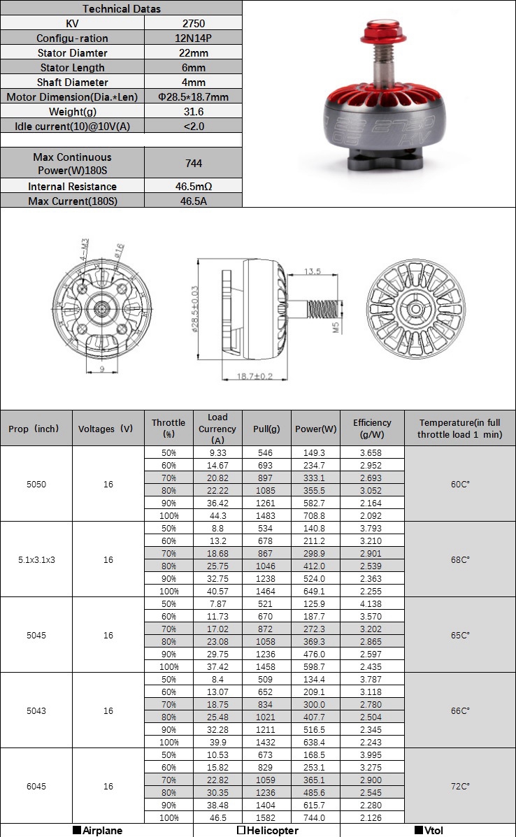 There's non-slip design on the contact surface of iFlight XING motor and propellers to increase the friction and to improve durability; Multi-heat dissipation hole design, helps to pull heat away continuously; Standard M3 16mm*16mm mounting pattern at the bottom, adapt to all frames on market; Motor cable length 160mm can meet different requirements whether connecting single or 4 in 1 ESC; Each motor has been dynamic balanced, all of them have passed the highest standard iFlight manufacturing and assembling procedure.
