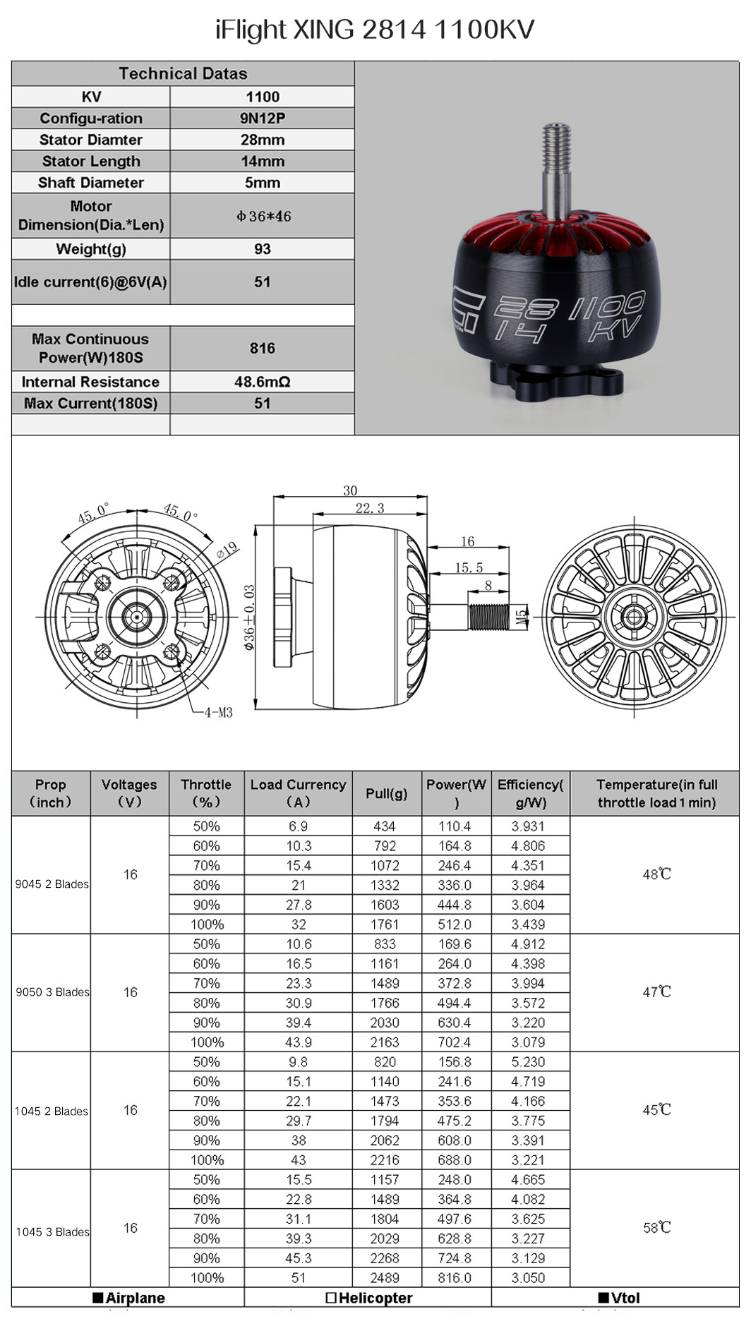iFlight XING 2814 1100KV Brushless Motor 4S FPV Brushless Motor for Long Range FPV Racing Drone