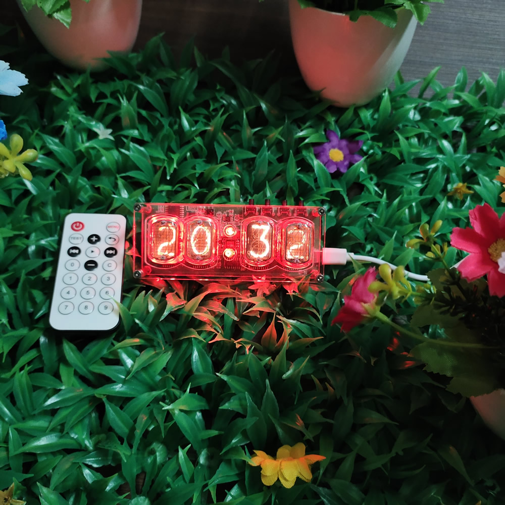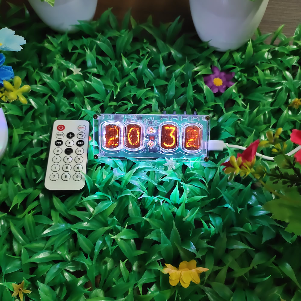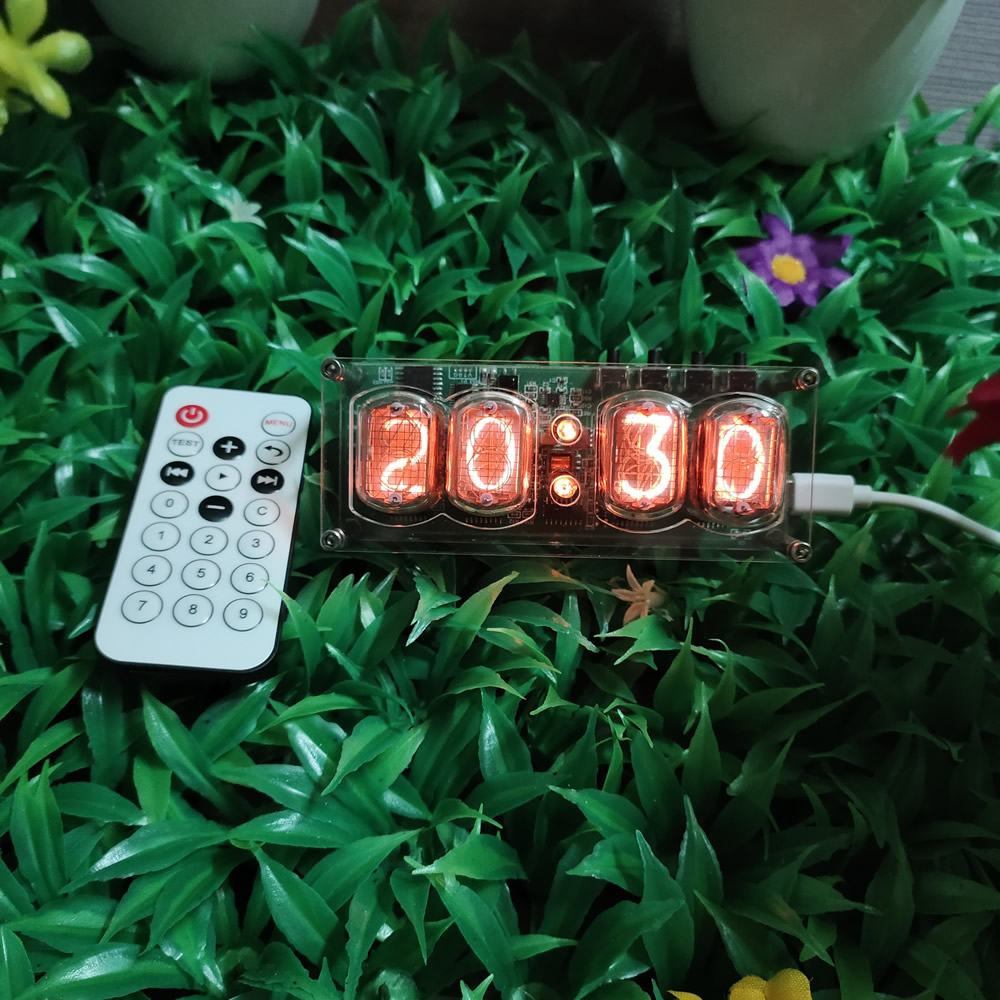 IN12 Nixie Tube Clock Retro Desktop Clock Digital Clock with Four IN12 Nixie Tubes & Remote Control