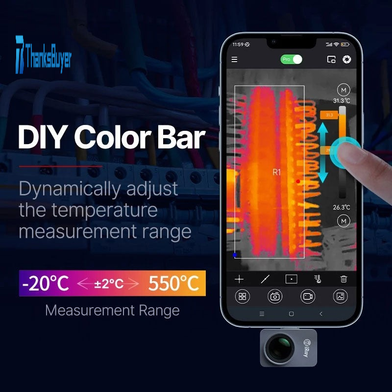 - Battery-free & Secondary Analysis: This thermal camera is easily to use with smartphones and no need extra battery. The infrared images have been taken can be used for secondary analysis, it can be opened directly with the software, perform point-line-surface analysis, no need to insert product.
