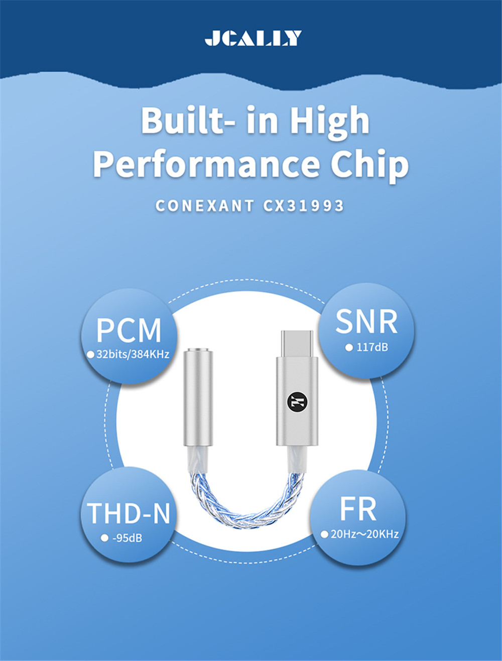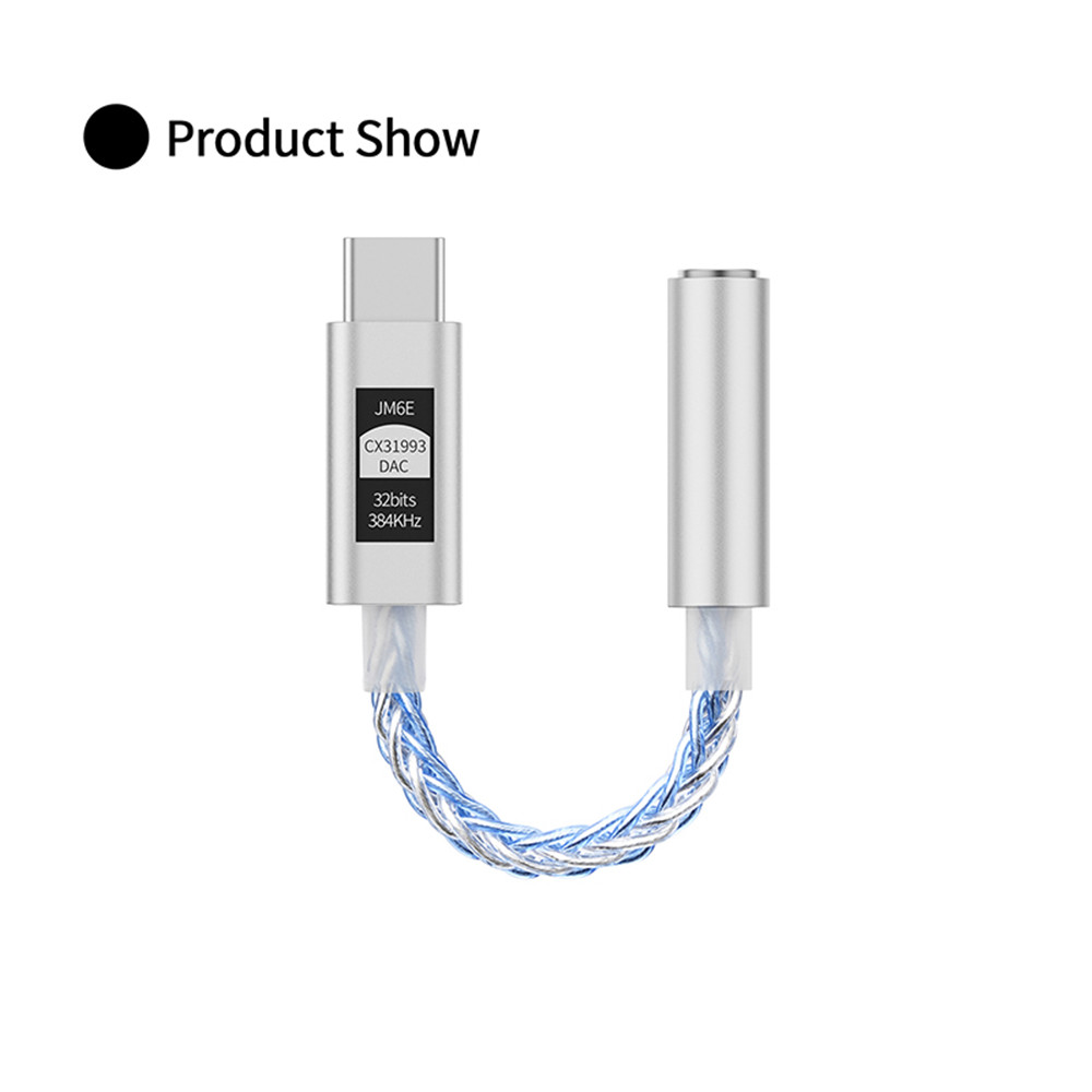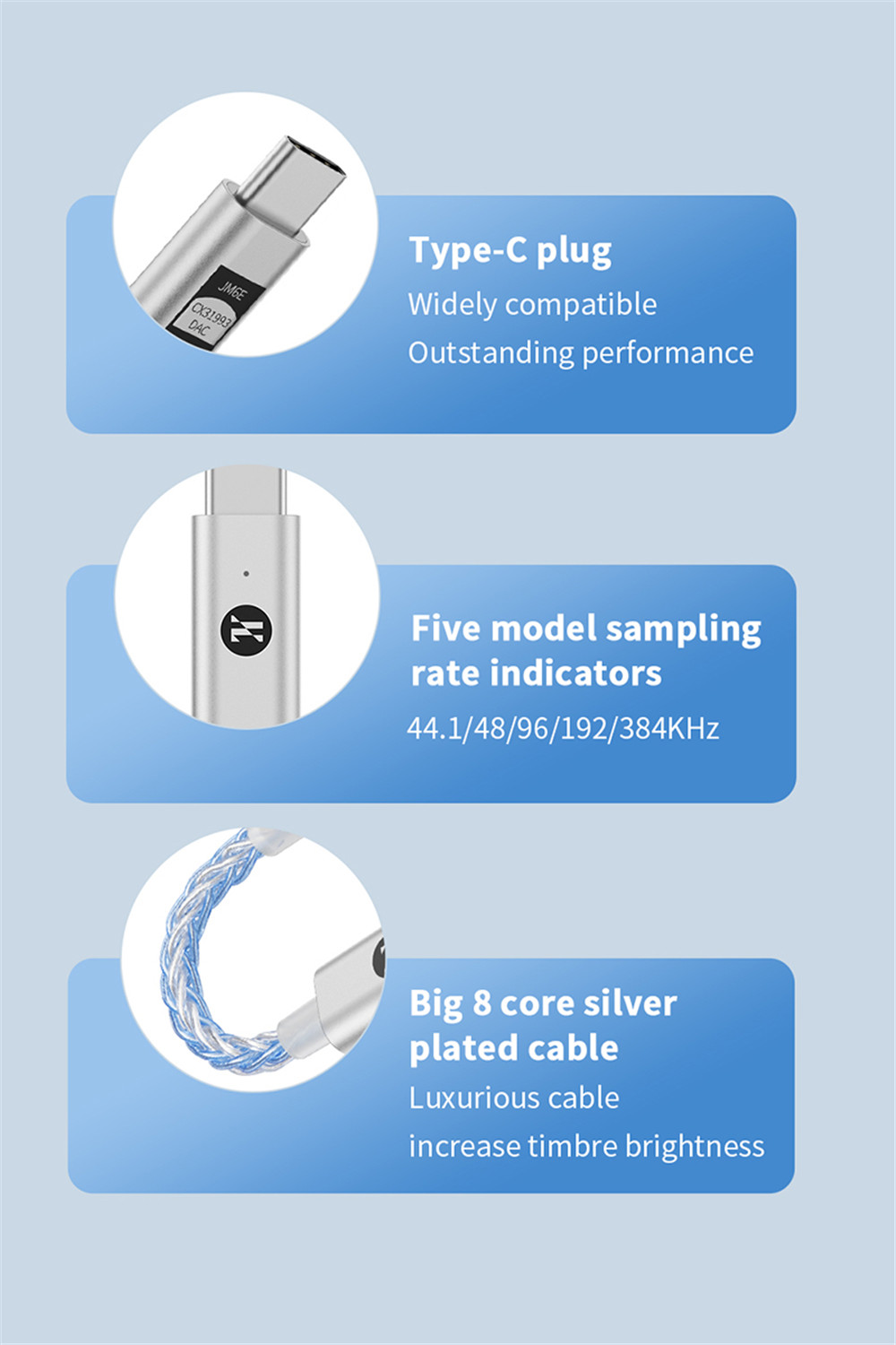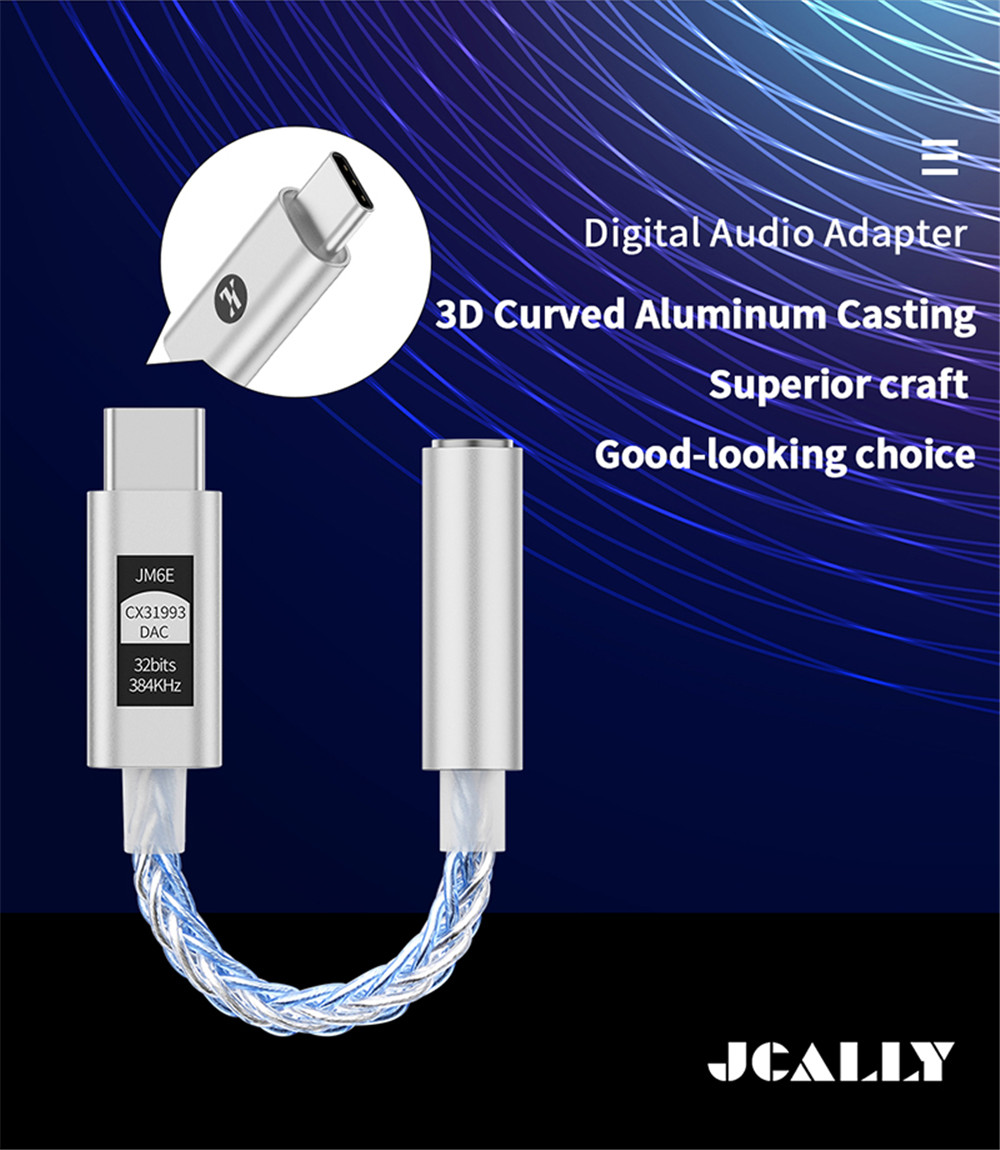 JCALLY JM6E Blue Digital Type-C Audio Adapter Cable with 44.1/48/96/192/284kHz Sampling Rate Indicator
