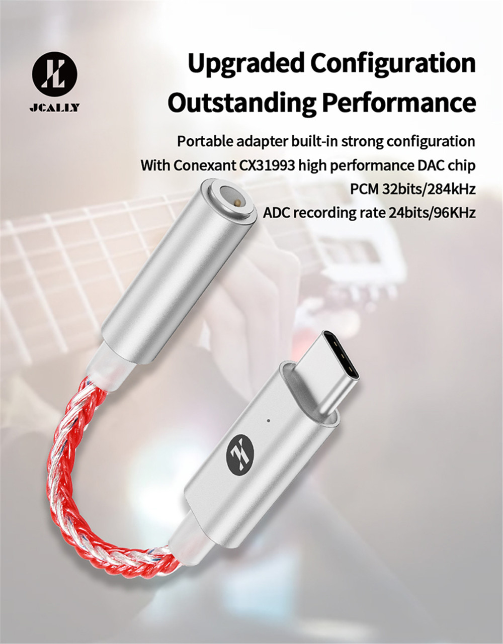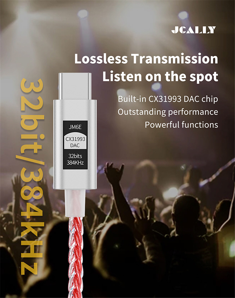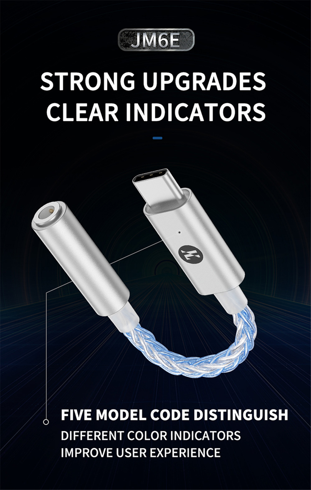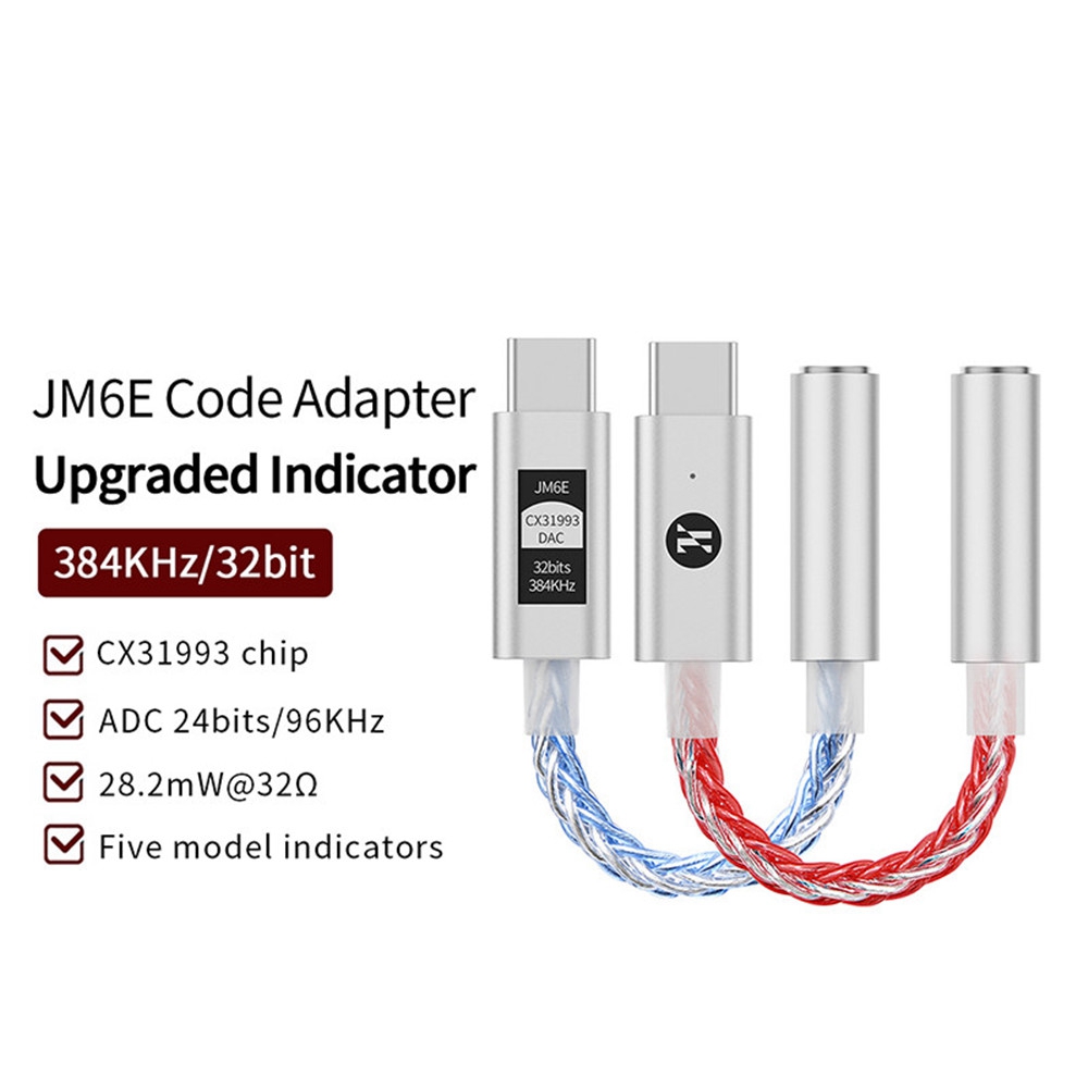 JCALLY JM6E Blue Digital Type-C Audio Adapter Cable with 44.1/48/96/192/284kHz Sampling Rate Indicator