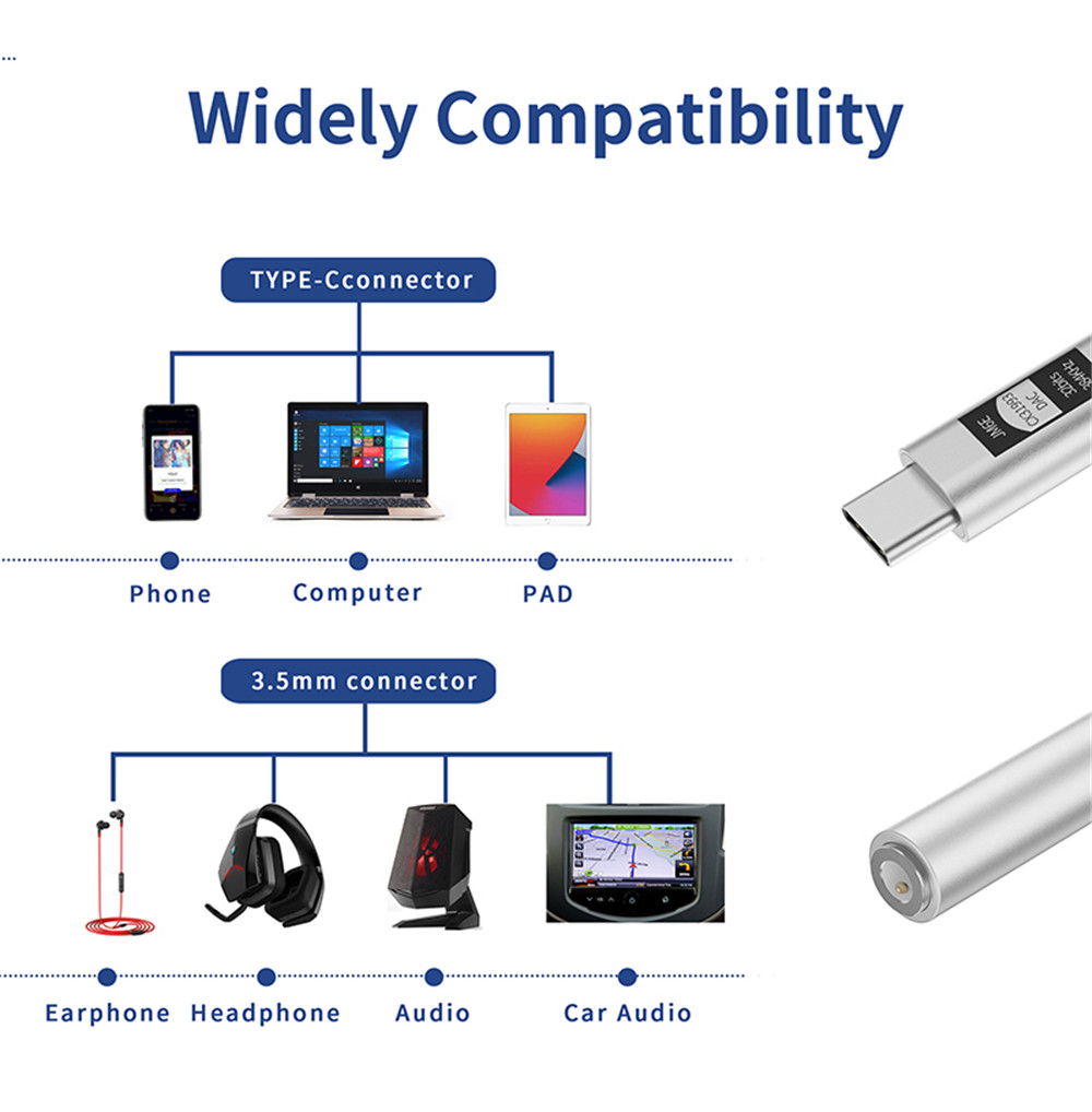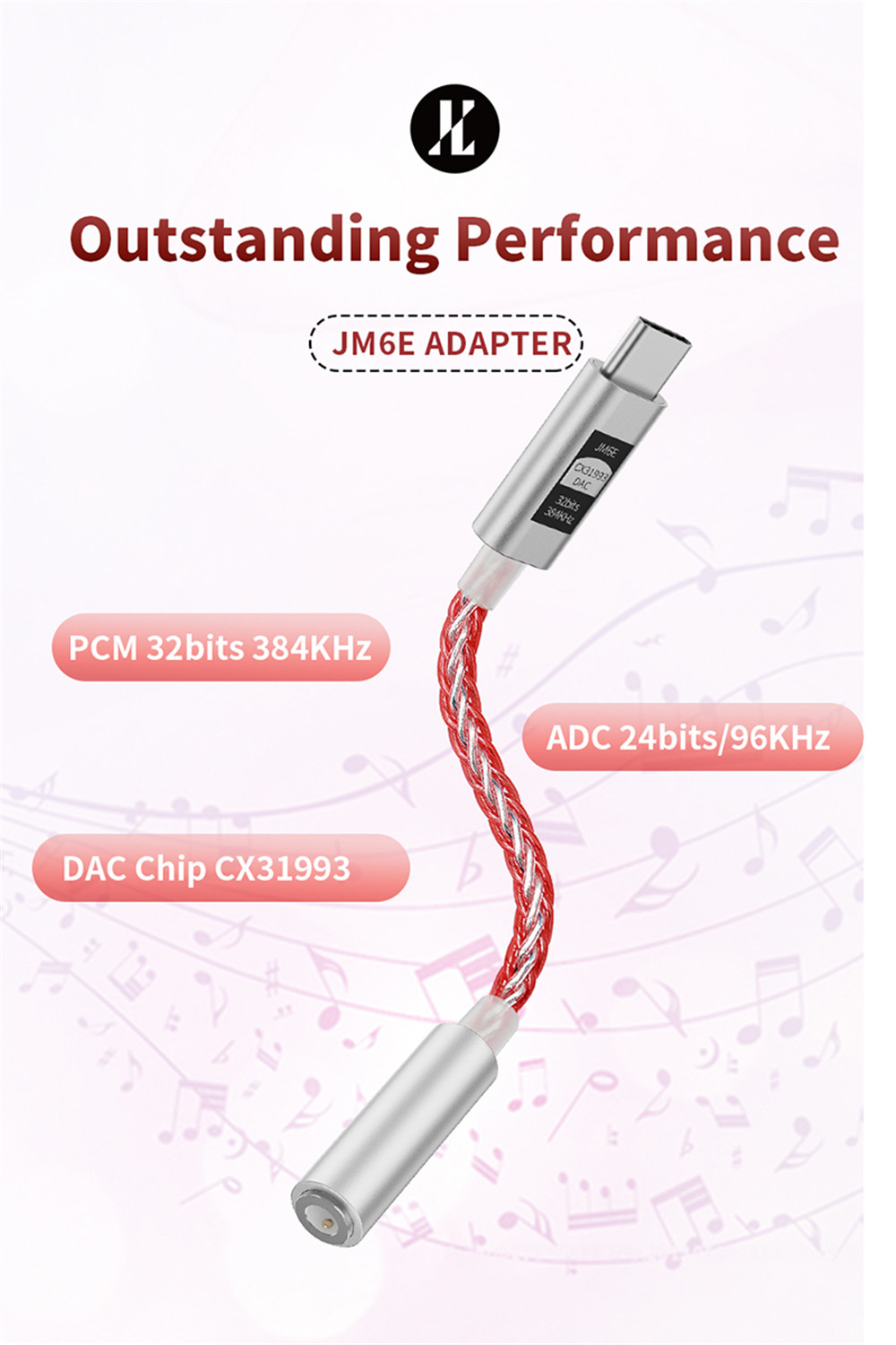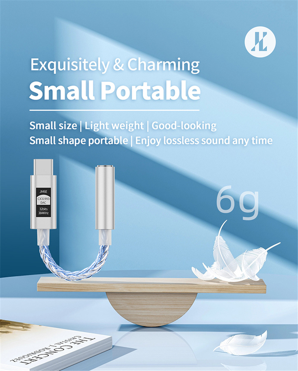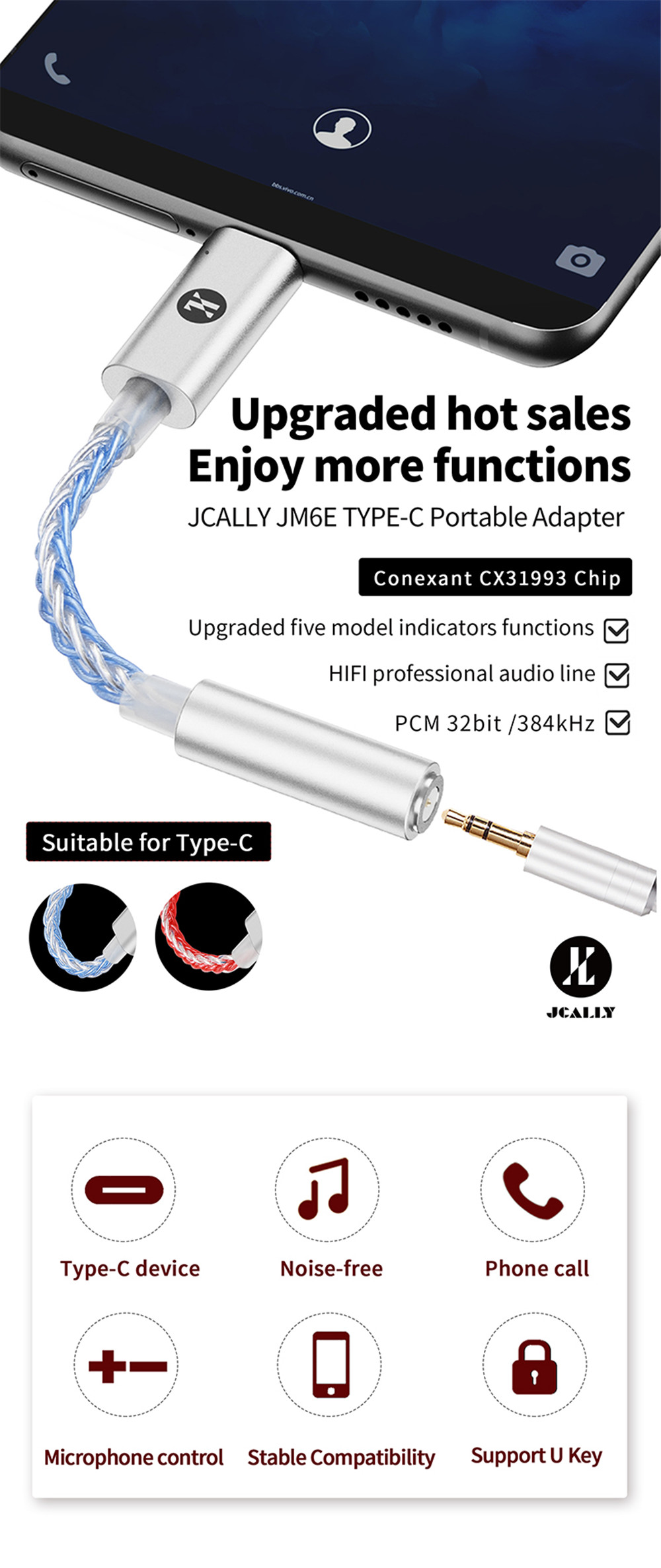 JCALLY JM6E Blue Digital Type-C Audio Adapter Cable with 44.1/48/96/192/284kHz Sampling Rate Indicator
