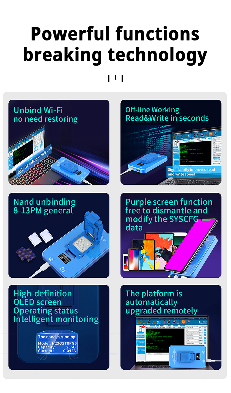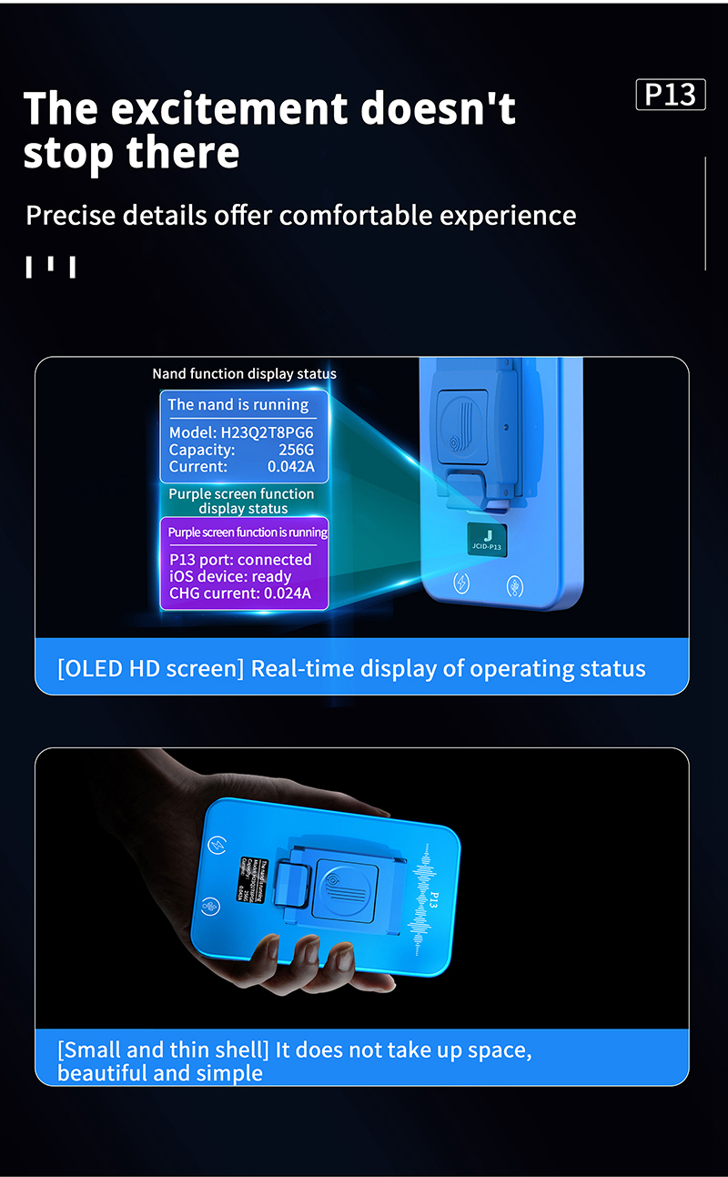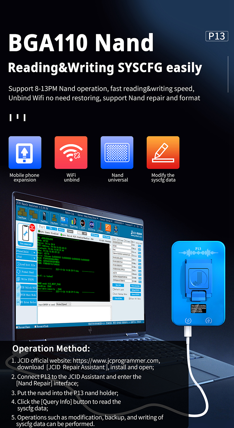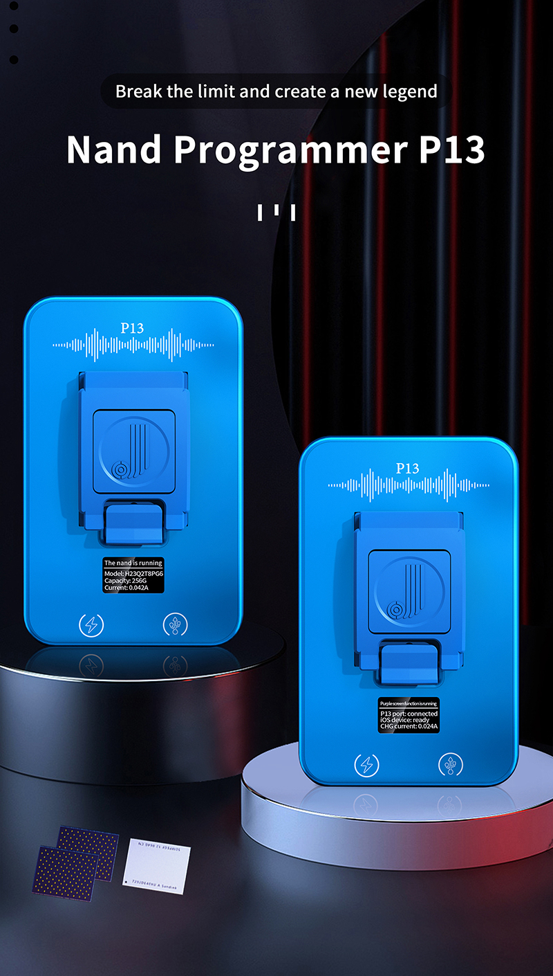 P13 is a nand programmer, mainly for detecting, repairing, reading & writing nand, and formatting. It is suitable for iOS device expansion, nand repair, unbinding WiFi, modify the syscfg and other operations.