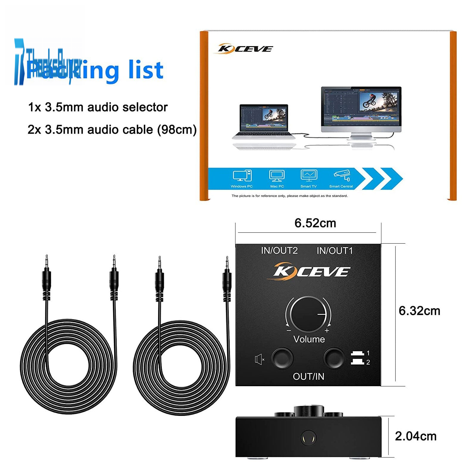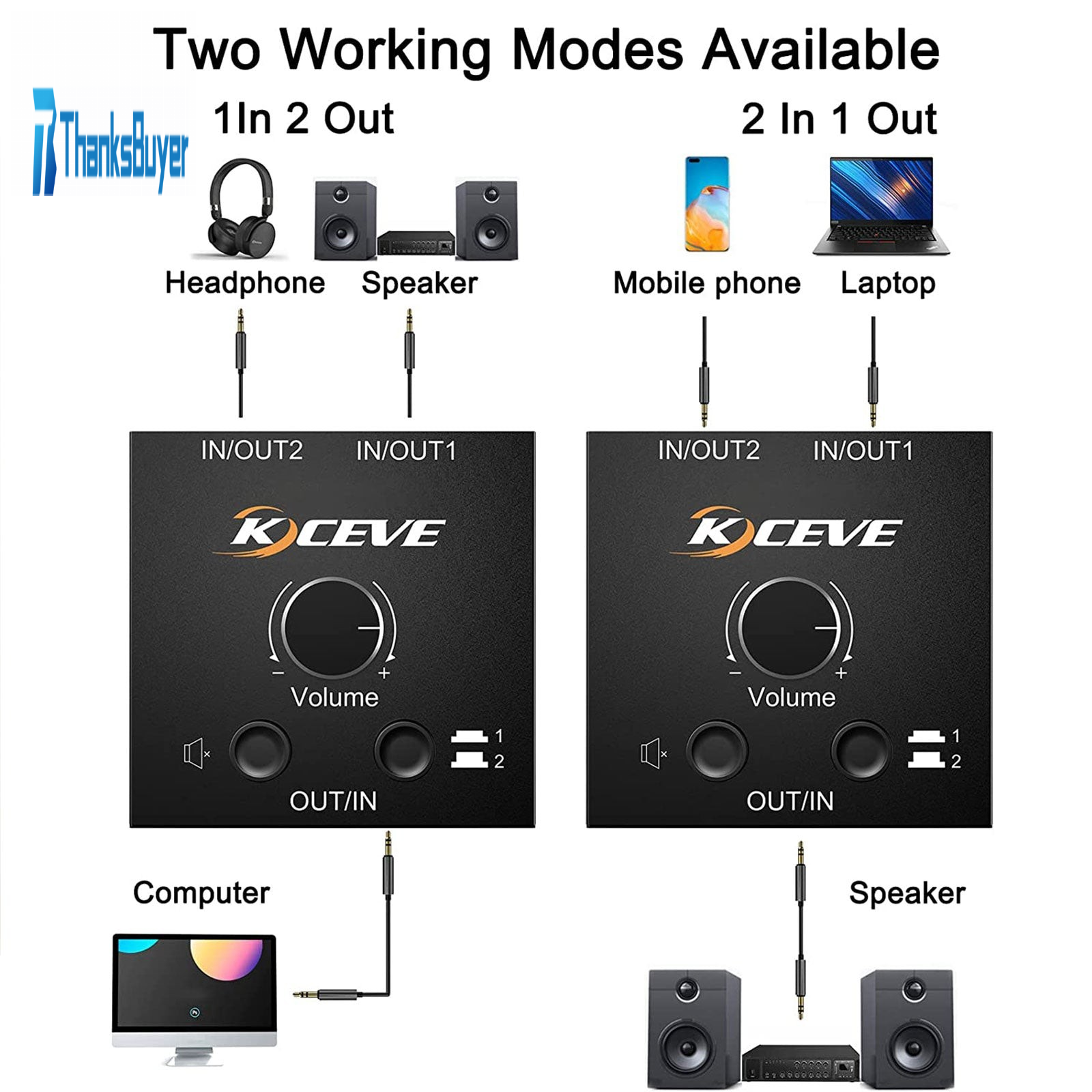 - Support 1 audio input and 2 analog audio output, you can switch the listening mode at will