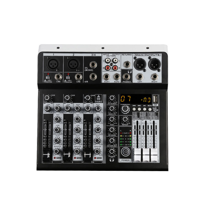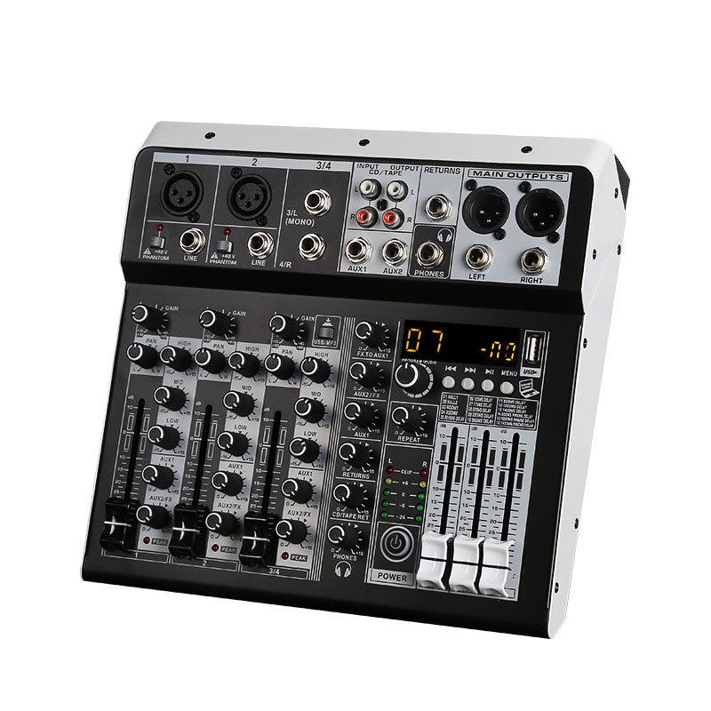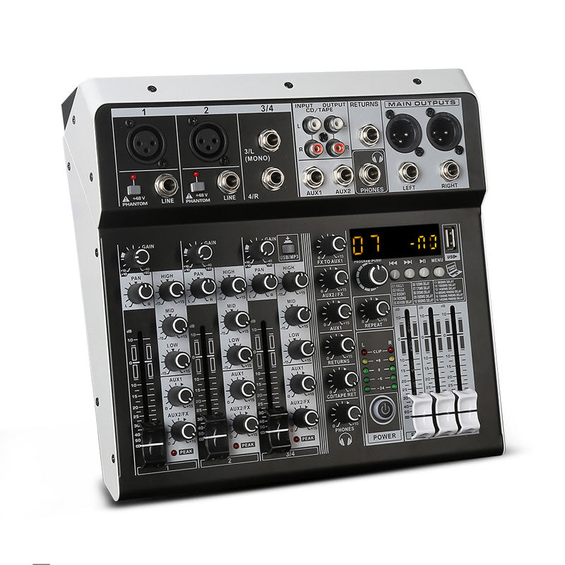 KP4 Professional 4-Channel Multifunctional Audio Mixer Built-in 16 Digital Effector 48V Phantom Power Supply