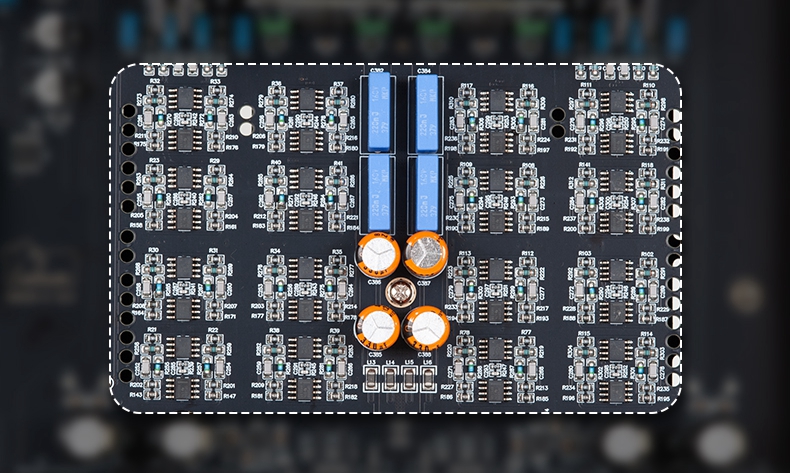 - The LPF filtering circuit uses JFETLC5 Class A discrete operational amplifier module, which has a larger output current, finer sound, and larger low-frequency dynamics compared to ordinary operational amplifiers. The operational amplifier module comes with a socket, making it easy for players to replace it themselves.