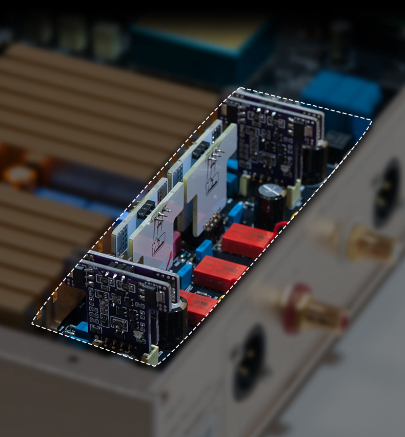 - Due to the use of 32 IV operational amplifiers in this machine, there is a significant amount of heat generated. Therefore, a CNC all aluminum heat sink has been specially customized to provide both heat dissipation and shielding (the capacitors inside the heat sink are designed to withstand high temperatures).