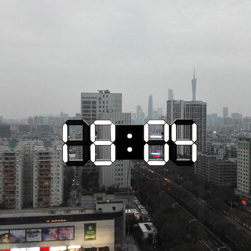 LED 3D Digital Clock Electronic Clock Remote Control Version w/ Alarm Clock Timing Function White Light Black Shell
