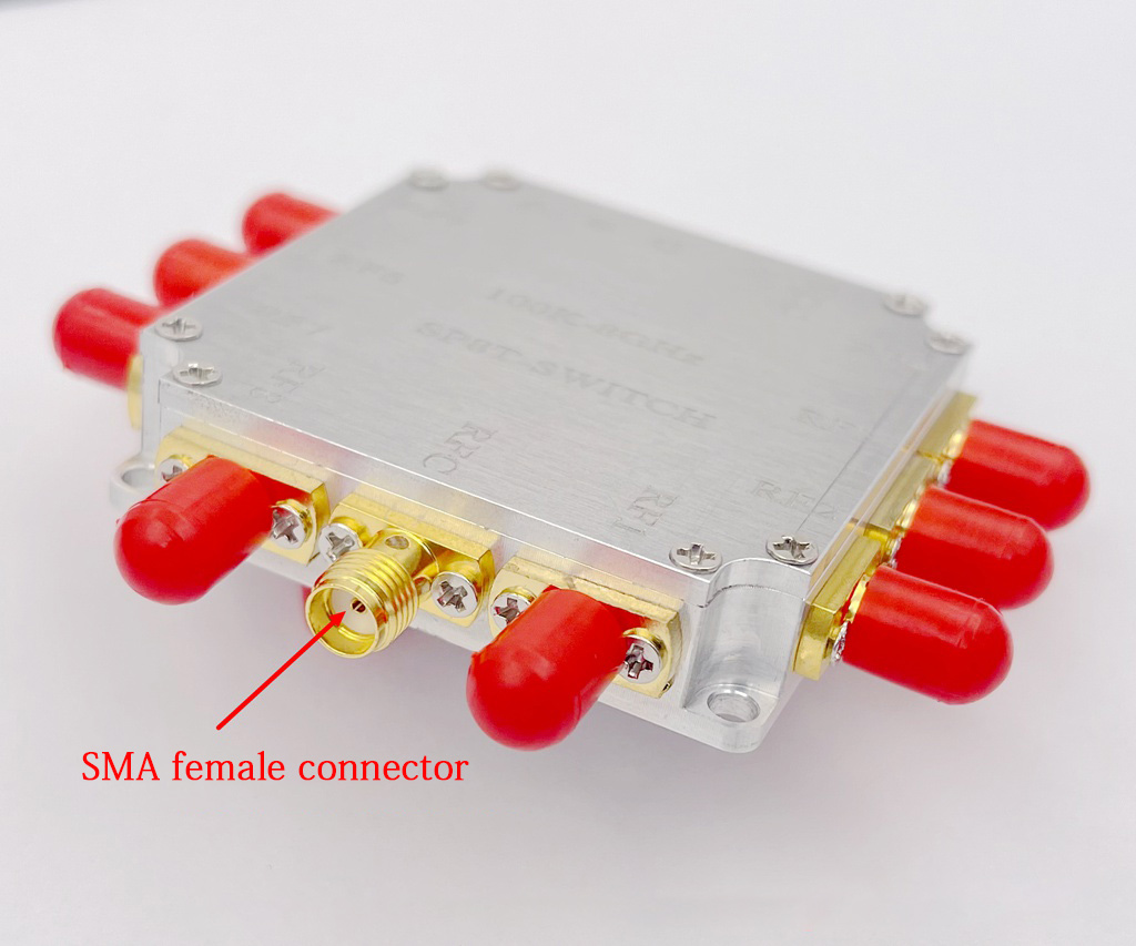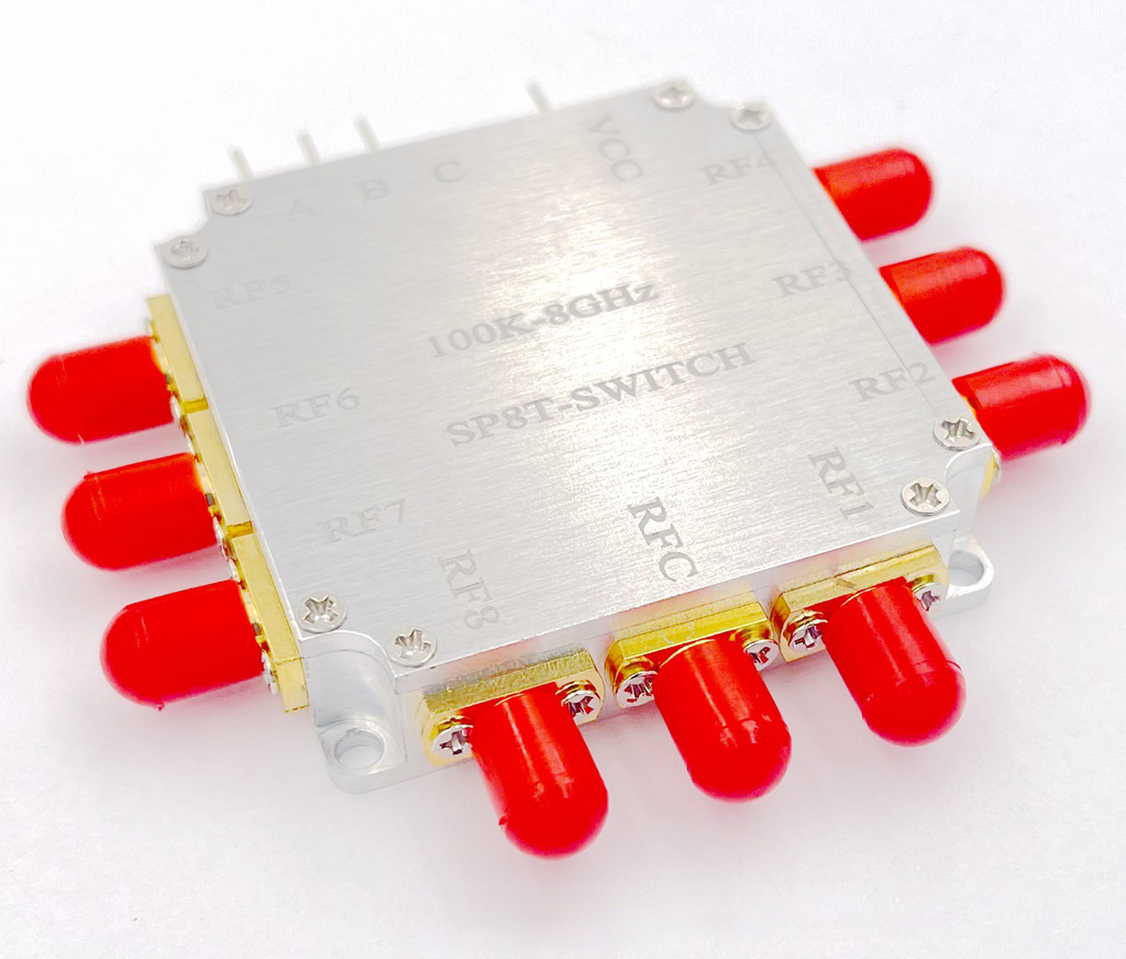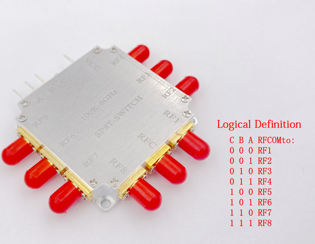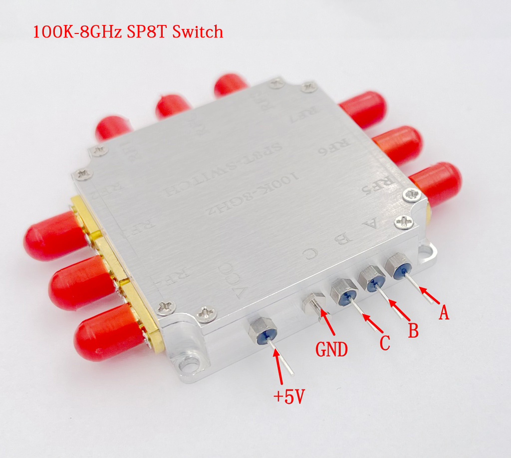 LF-8GHz 100K-8GHz SP8T Switch RF Switch with Metal Shell High Isolation Low Insertion Loss