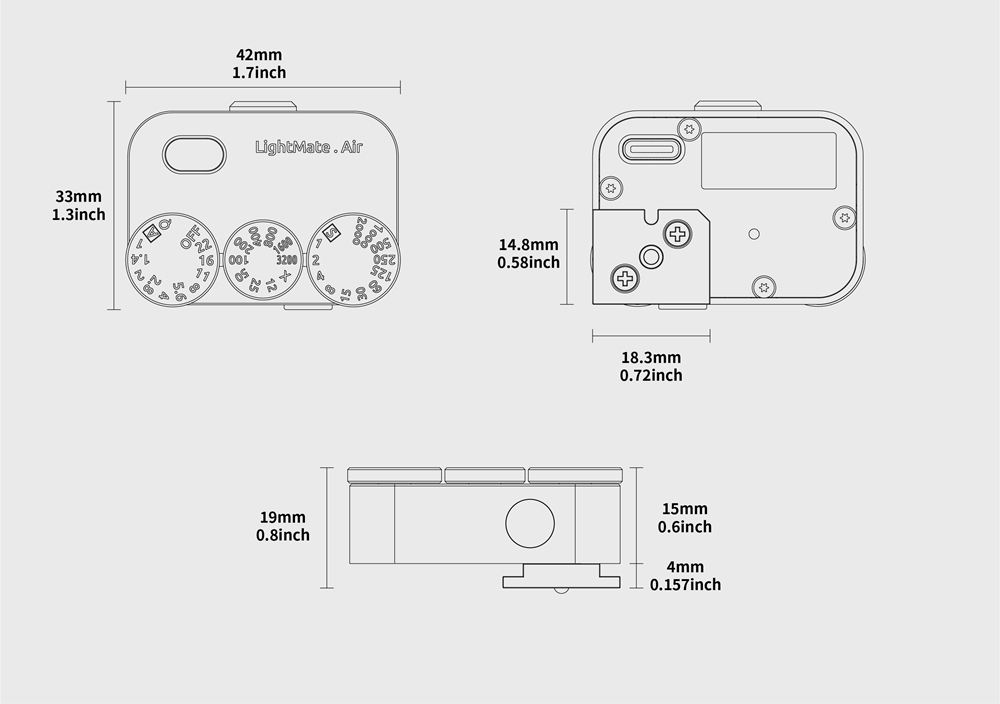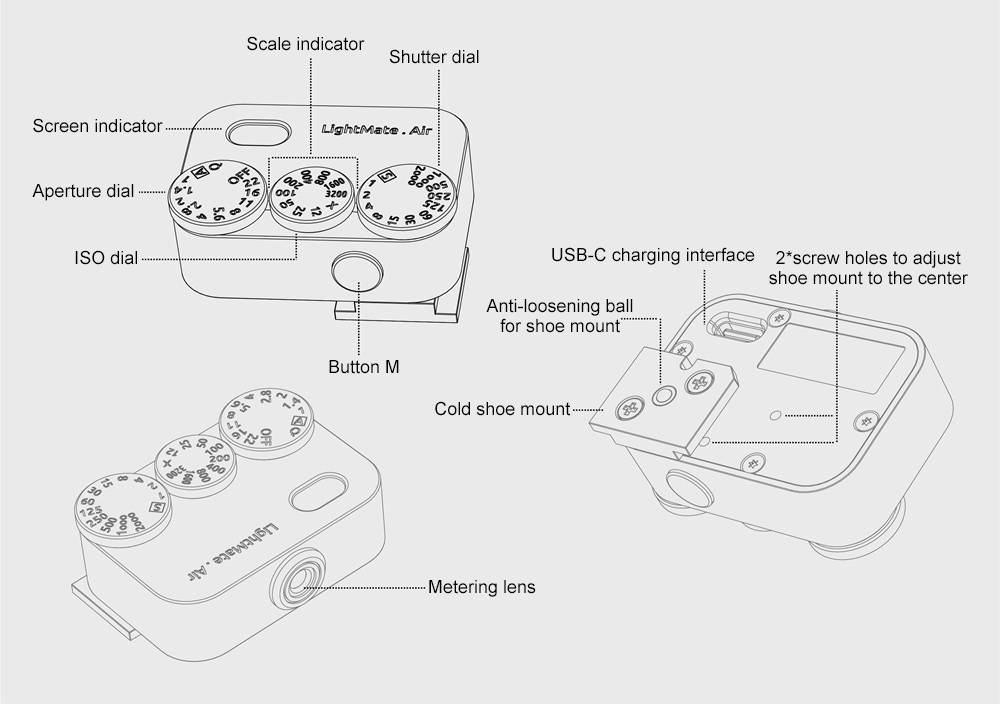 The LightMate AirPro is a 35° wide-angle reflective light meter. It is easy for beginners to use. The light meter supports metering modes such as automatic aperture mode, automatic shutter speed mode, manual mode and EV mode. In addition, you can trigger metering manually and automatically.