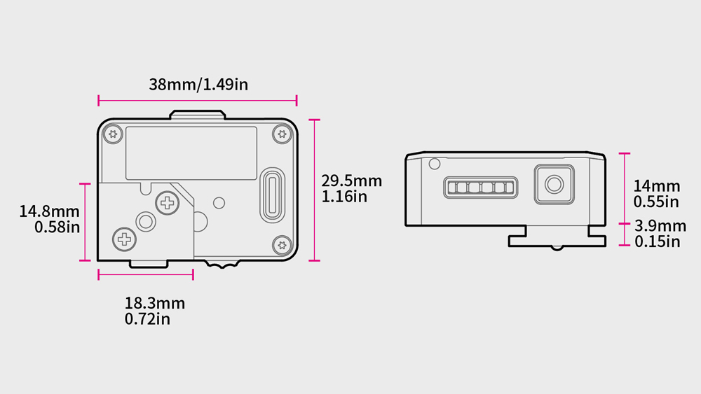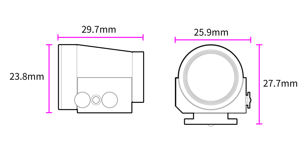 · Size without shoe mount: 38mm*29.5mm*14mm