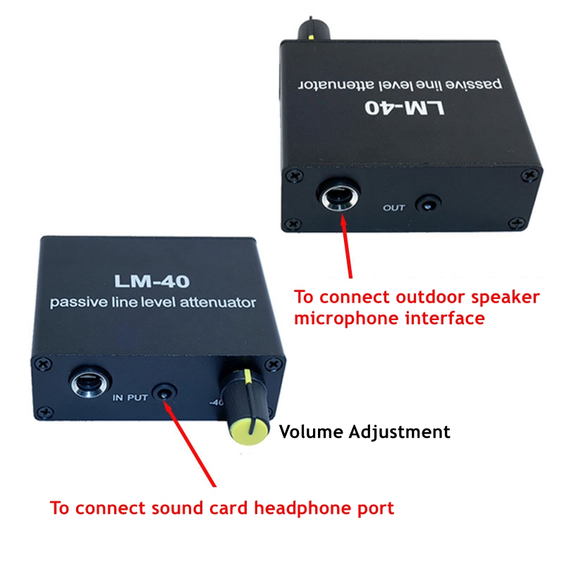 LM-40 Passive Line Level Audio Attenuator Sound Card and Outdoor Speaker Audio Converter with 3.5mm/6.5mm Audio Cables