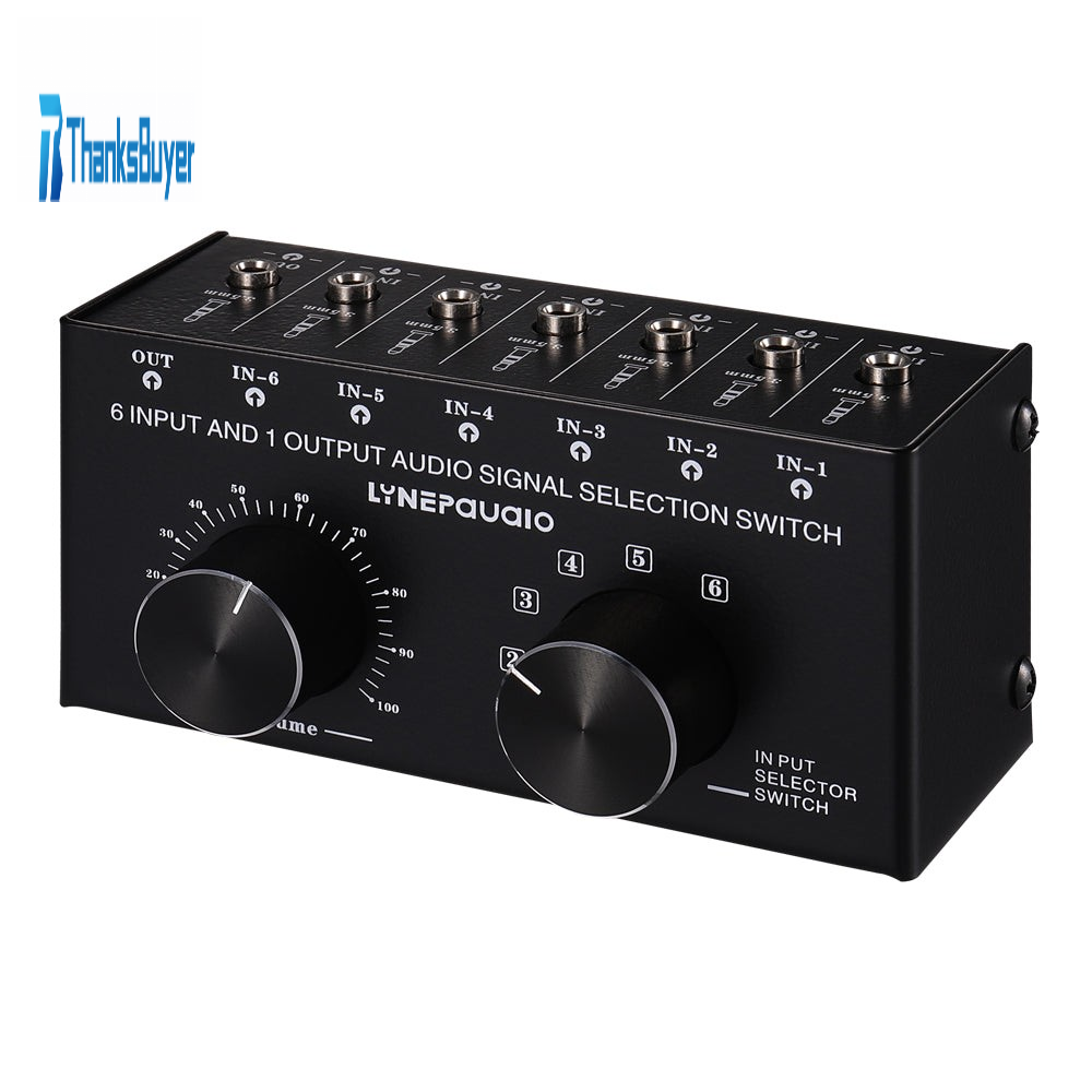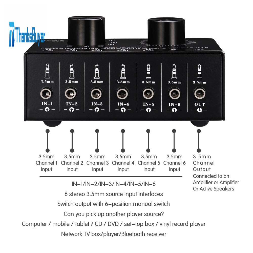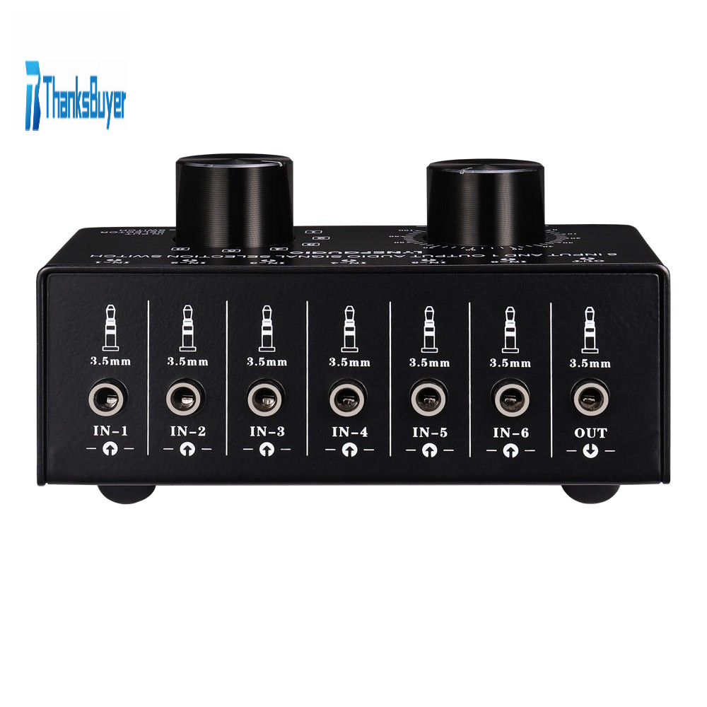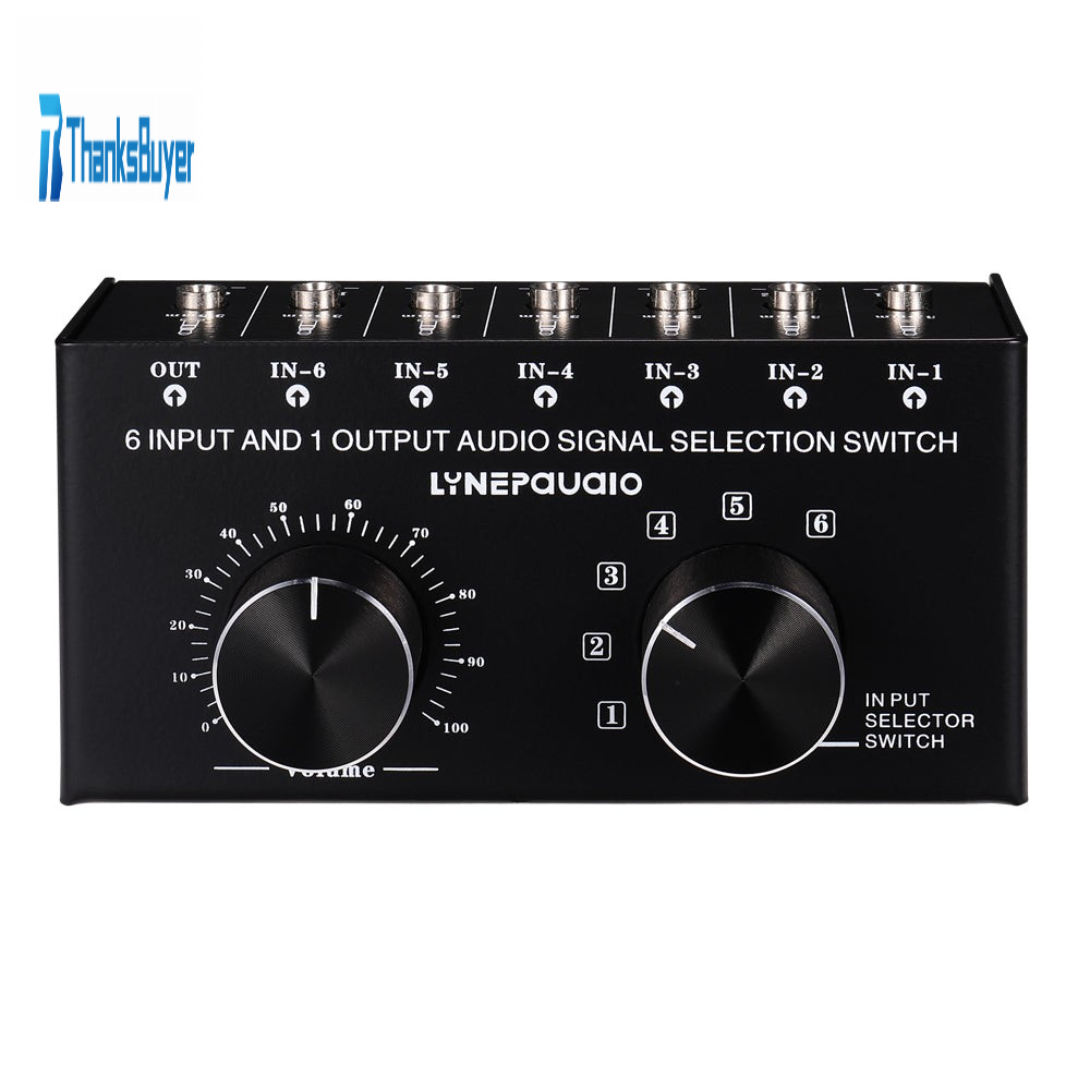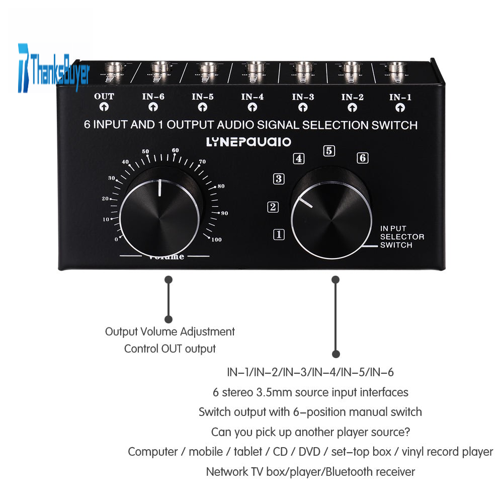 Lossless Audio Input Signal Selector Audio Input Switch 6 IN & 1 OUT Adjustable Output Volume 3.5mm Ports