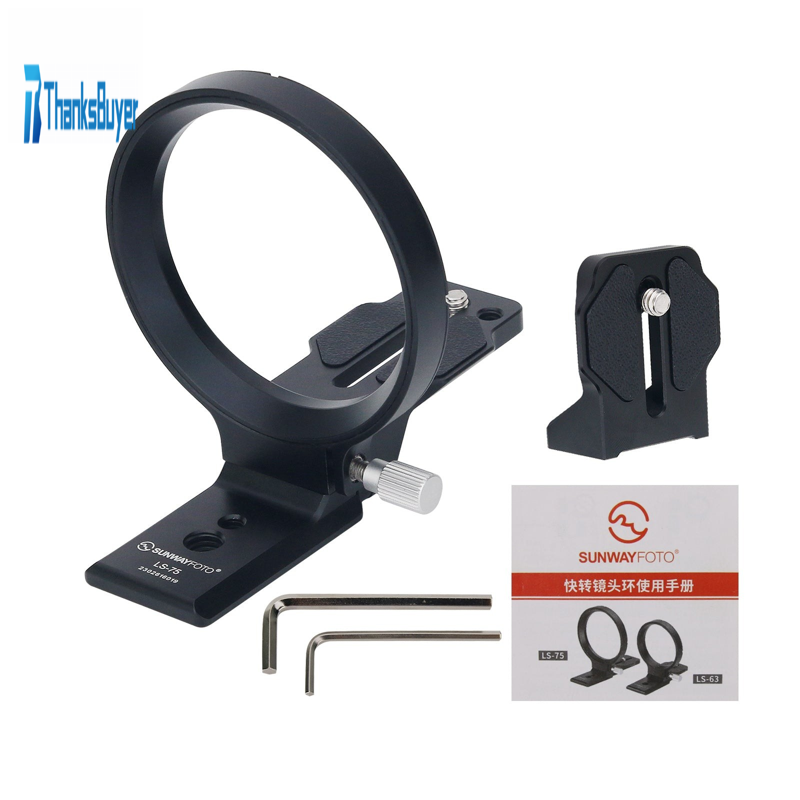 LS-75 Metal Lens Collar Great Stability and Balance Ring Lens Support with Arca Swiss Plate Collar Mount