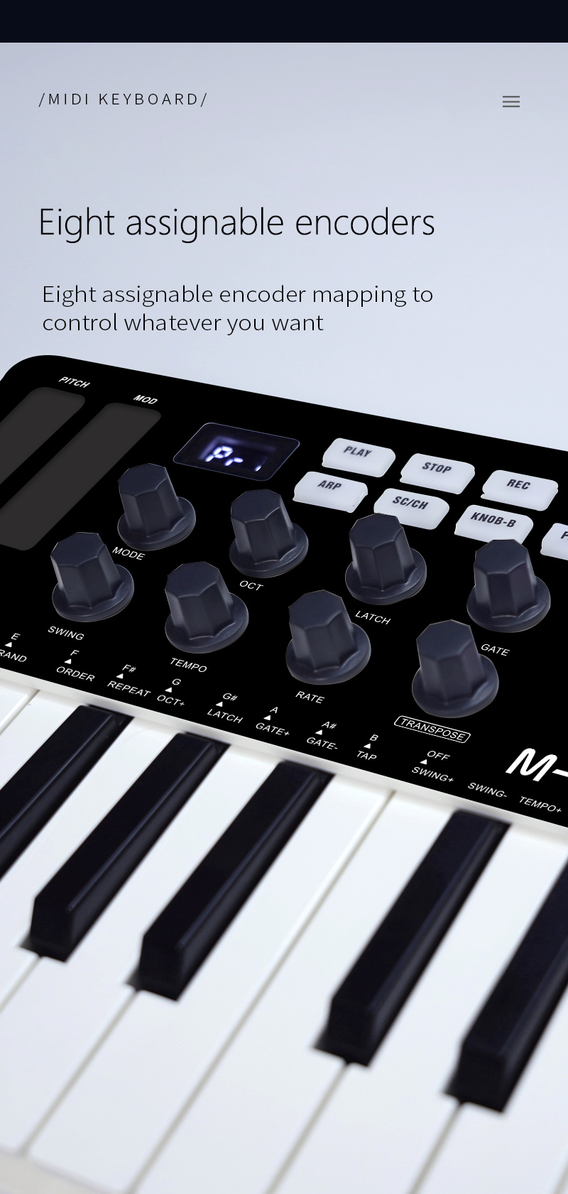 - Knobs: 8 assignable 360-degree rotary knobs