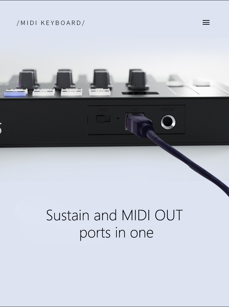 - Sustain and MIDI OUT ports in one