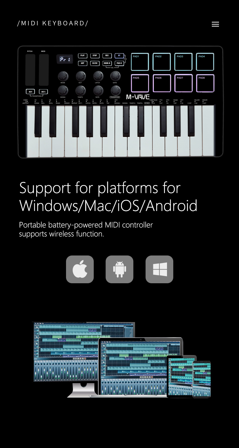 - Compatible with digital audio workstation for Windows, Mac OS, Android and iOS