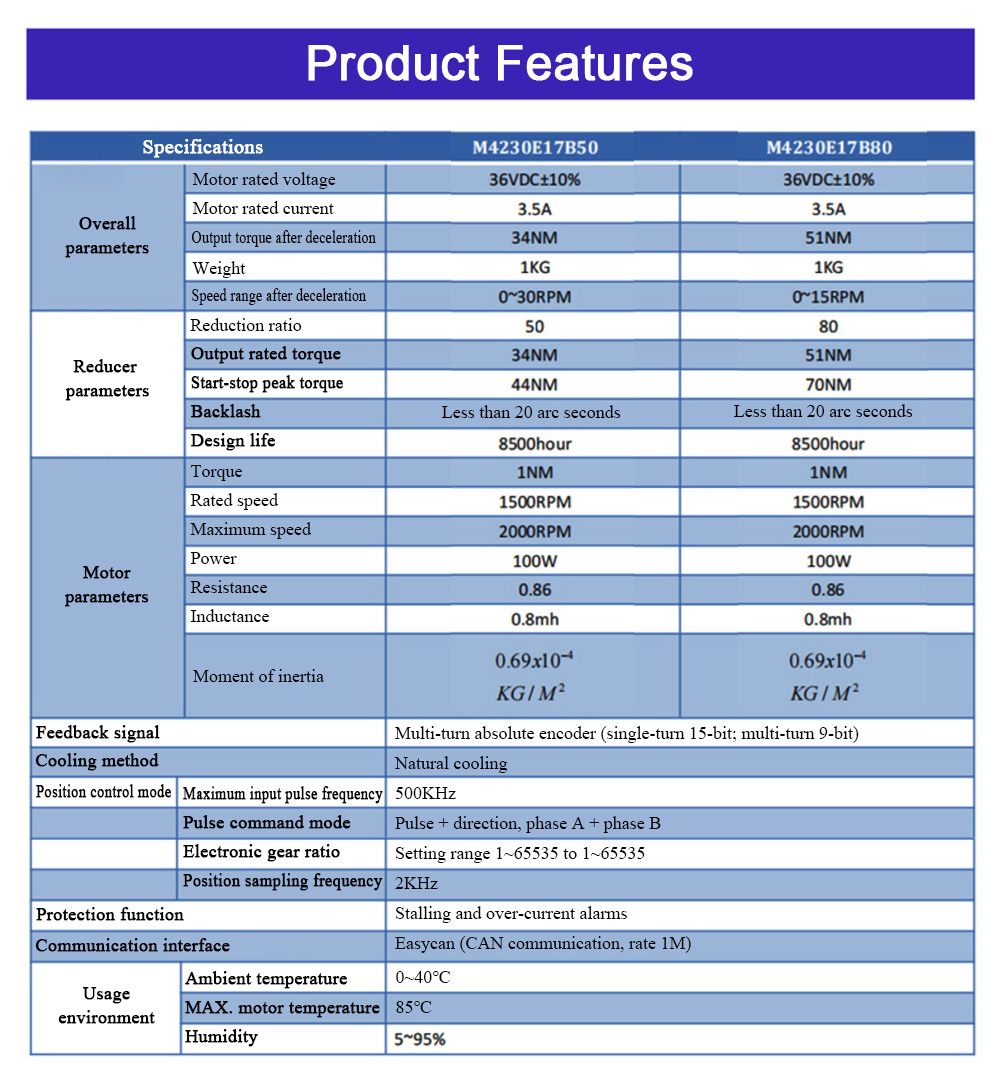 M4230E17B50 DC Servo Gear Motor Servo Motor with Gearbox (42mm Flange 100W & Reduction Ratio 50)